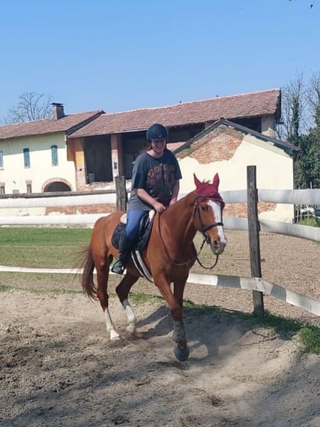 6-year-old Irish gelding – 1.75 m at the withers For sale, due to lack of time, an Irish gelding born on 15/07/2019. Horse of excellent conformation, young and with good sporting potential or for amateur activities. ✅ Never had health issues or lameness ✅ Balanced temperament ✅ Good growth and harmonious development ⚠️ Shows a support tic, manageable without particular complications Suitable for a rider who wishes to grow with him and dedicate consistency. NB: sold with all his equipment (saddle-bridle-blankets) 📍 Available for viewing in Sant'Angelo Lodigiano. 💌 For more information, photos, and videos, please contact privately.