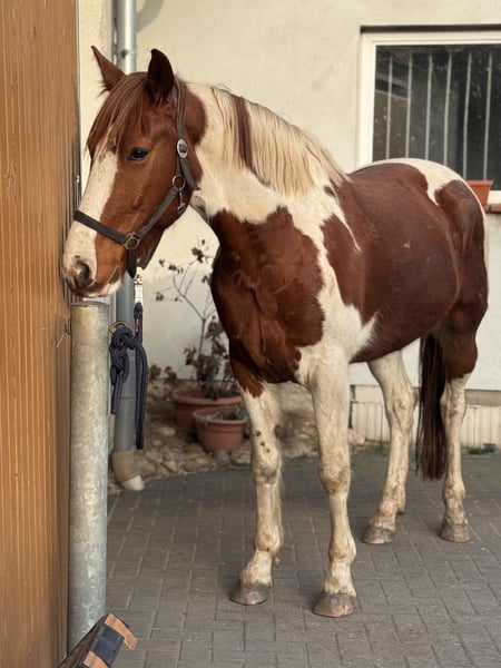 Schweren Herzens haben wir uns dazu entschieden, für unseren Valero ein neues Zuhause zu suchen. Es ist uns besonders wichtig, dass wirklich alles passt und wir auch wenn möglich weiterhin Kontakt zu ihm haben können. Platz vor Preis! Valero ist ein 8 jähriger irischer Wallach mit einem roten Pass. Er ist ca. 1,60m groß und hat einen super lieben Charakter. Er ist verspielt, sehr anhänglich und immer lieb im Umgang. Außerdem geht er sicher durch den Straßenverkehr und ist auch im Gelände immer zuverlässig. Er hat Spaß daran neue Tricks zu lernen und macht jeden Quatsch mit. Unterm Reiter zeigt er sich stets motiviert, arbeitet gut mit und ist sehr lernwillig. Bei uns wird er hauptsächlich dressurmäßig gearbeitet, da ihm das Springen aufgrund seiner Hinterhand nicht so liegt, wobei auch das ihm trotzdem großen Spaß bereitet. Er braucht einen zuverlässigen Reiter der weiß was er tut und ihn weiter fördern kann. Er ist kein Anfängerpferd und sein Reiter sollte konsequent, jedoch immer fair sein. Wenn man da dran bleibt, kann ich es mir durchaus vorstellen, dass man mit ihm mal eine kleine Dressur starten kann. Bei ernsthafter Interesse freuen wir uns über eine Nachricht.