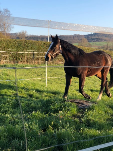 Angeboten wie’ wird hier eine Stute, geb.2012., braun, Stm. 160 cm, gesund zum Verkauf. Sie ist total Menschen bezogen und liebt es zu kuscheln. Sie hat viel Freude an Bodenarbeit und ist dabei steht's aufmerksam und hat sehr tolle,ausdrucksstarke GGA. Die Stute ist im Umgang super artig, geht gut auf einen Anhänger, putzen, satteln, alleine weg gehen, Hufschmied ist alles kein Problem. An der Longe läuft sie alle drei GGA einwandfrei, ist sehr feinfühlig und hört gute auf die Stimme. Sie zeigt Springambitionen, hat viel Freude an Bodenarbeit und Gymnastizierung und muss noch weiter gefördert werden, da sie viel Potential hat und gefallen möchte! Leider hat sie wohl sehr schlechte Erfahrungen beim einreiten gemacht und lässt sich nur von erfahrenen, sicheren Reitern reiten. (Dann lässt sie sich gut reiten) Beim aufsteigen ist sie zunächst ängstlich.Sie war bereits schon zwei mal in Beritt. Ich habe leider nicht die nötige Zeit, um ihr bei ihrer Ausbildung gerecht zu werden. Daher suche ich für sie, einen erfahrenen Reiter, der noch Zeit in ihre Ausbildung steckt. Sie hatte auch schon einmal ein Fohlen, daher auch als Zuchtstute interessant (weißes Papier) Sie braucht einen Platz, wo sie weiter gefördert wird. Sie wird nicht als Anfänger oder wiedereinsteiger verkauft. Alles weitere, Bilder, Videos etc gerne per PN oder bei einem Kennenlernen