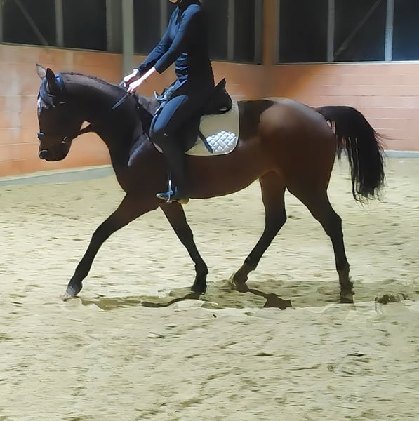 Cavalla simpatica di 12 anni, circa 167 cm, che desideriamo affidare a persone gentili con compagnia equina. Una cavalla che si impegna sempre a dare il meglio di sé. Conosce trattori, camion, cani e altri animali. Si integra rapidamente in un nuovo gruppo e cerca di fare nuove amicizie. Su richiesta e a un piccolo sovrapprezzo, può essere consegnata con accessori completamente nuovi. Il trasporto può essere organizzato. È possibile effettuare un'accurata visita veterinaria pre-acquisto, comprensiva di radiografie e analisi del sangue, anche tramite il veterinario di fiducia. Per favore, le richieste devono essere fatte esclusivamente telefonicamente al numero 01774289729. Le richieste scritte non verranno risposte. Le chiamate con numero nascosto saranno automaticamente rifiutate.