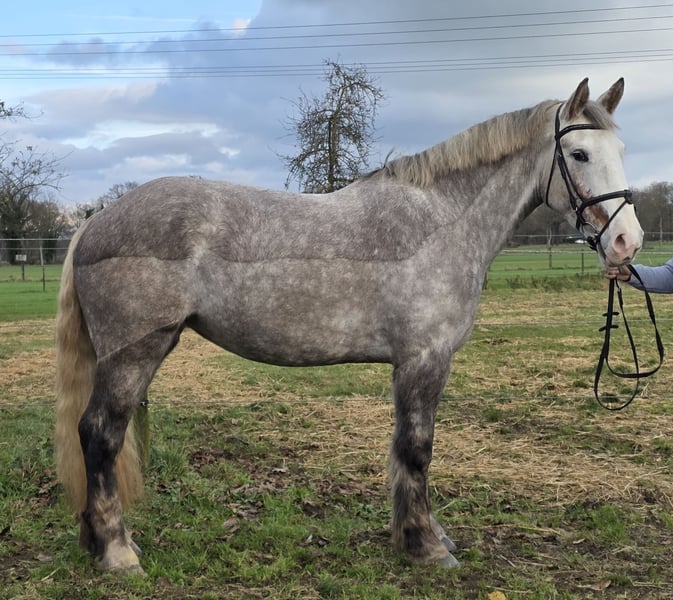 Heather is momenteel een Irish Draught merrie van 159 cm. Ze zal waarschijnlijk nog wat groeien. Zoals gebruikelijk voor haar ras, heeft ze een goede basisopleiding en past ze ook uitstekend bij grote ruiters. Heather is sterk en veelzijdig inzetbaar. Heather kwam rechtstreeks van haar fokker naar ons. Ze is vorig jaar voorzichtig aangezad en was uitsluitend in het bos actief. Zoals op de foto's te zien is, komt ze direct van de kust en werd daar regelmatig aan zee gereden. :-) Sinds haar komst bij ons wordt Heather dressuurmatig getraind in de binnenbak. Ze beschikt over drie goede, degelijke basisgangen en is goed te rijden. Hoewel het misschien niet meteen opvalt, is Heather ontzettend licht te rijden. Haar karakter is uniek; ze is zo'n lieve en makkelijke merrie. Heather is echt betoverend, Irish Draughts zijn gewoon zulke coole en nerveus sterke paarden. We blijven er telkens weer van onder de indruk. Heather is een allrounder, ja, het meisje kan ook goed springen. ;-) Voor meer informatie, we horen graag van u via telefoonnummer: 0177/2721831. Bent u geïnteresseerd in video's? Stuur ons dan gerust rechtstreeks via WhatsApp. :-)