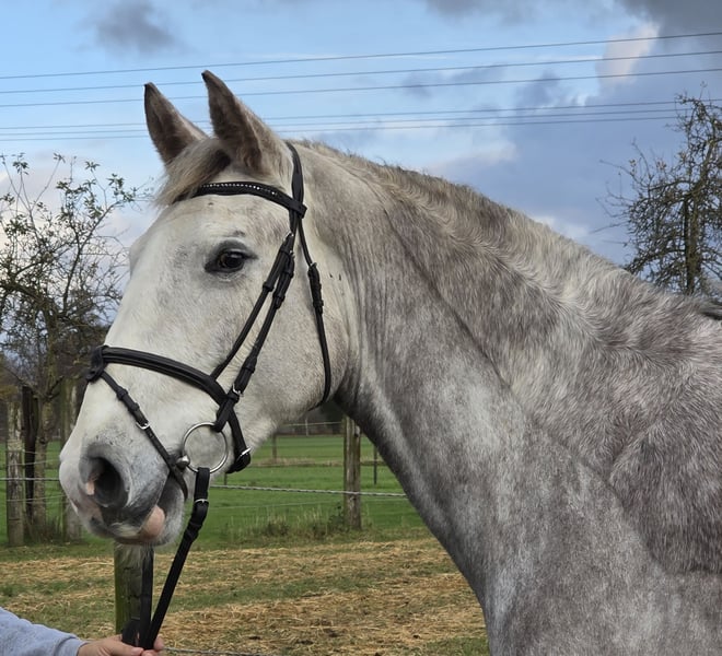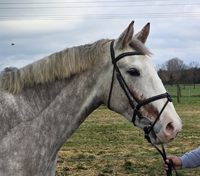 Heather est une jument Irish Draught mesurant actuellement 1,59 m. Elle est encore susceptible de grandir un peu. Typique de sa race, elle possède une base solide et convient parfaitement à de grands cavaliers. Heather est robuste et polyvalente. Elle nous a été confiée directement par son éleveur. L’année dernière, elle a été doucement initiée au dressage et a principalement été menée en forêt. Comme le montrent les photos, elle vient directement de la côte, où elle a régulièrement été monté au bord de la mer. :-) Depuis son arrivée chez nous, Heather travaille en dressage dans la carrière intérieure. Elle dispose de trois bonnes allures de base solides, et elle est facile à monter. Ce qui peut surprendre, c’est à quel point Heather est légère en main. Son caractère est exceptionnel : c’est une jument très douce et simple à vivre. Heather est vraiment adorable ; les Irish Draughts sont tout simplement des chevaux très cool et résistants. Nous sommes toujours impressionnés. Heather est une véritable touche-à-tout, et oui, elle sait aussi bien sauter. ;-) Pour plus d’informations, n’hésitez pas à nous appeler au 0177/2721831. Si vous souhaitez voir des vidéos, veuillez nous contacter directement via WhatsApp. :-)
