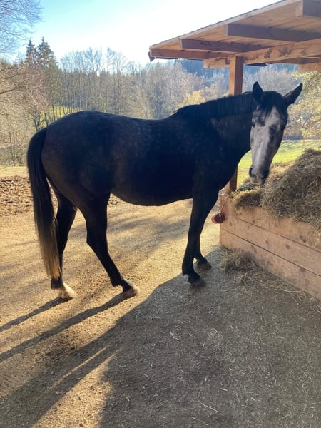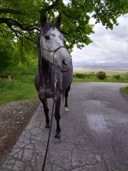 Schickes Englisches Sport Horse zu verkaufen! Name: Bounty Alter: 5 Jahre Stockmaß: 160 cm Vater: Jack the Robin xx (siehe letztes Bild) Er steht im Gestüt Neustadt-Dosse und gilt dort als einer der Top Vererber für die deutsche Sportpferdezucht. Er ist als Veredler nicht nur für die Zuchtrichtung in Springen und Vielseitigkeit, sondern auch für dressurbeonte Nachkommen bekannt. Besonderheiten: Bounty überzeugt nicht nur mit ihrer außergewöhnlichen Optik, sondern auch mit ihrem harmonischen Körperbau. Sie ist ein vielseitiges und braves Pferd, das sich ideal für Freizeitreiten, aber auch für Dressur, Springen oder Gelände eignet. Sie ist klar im Kopf, menschenbezogen und möchte gefallen. Bounty hat genügend Zeit bekommen sich zu entwickeln, sie wurde spät angeritten und ist daher noch unverbraucht. - Englisches Sport Horse mit viel Potenzial - Brav im Umgang und immer händelbar - Nervenstark im Gelände - Verlade- und schmiedefromm - Steht aktuell im Offenstall Bei Interesse oder für weitere Informationen stehe ich gerne zur Verfügung. Eine Besichtigung ist nach Vereinbarung möglich.