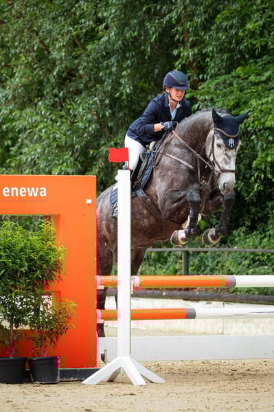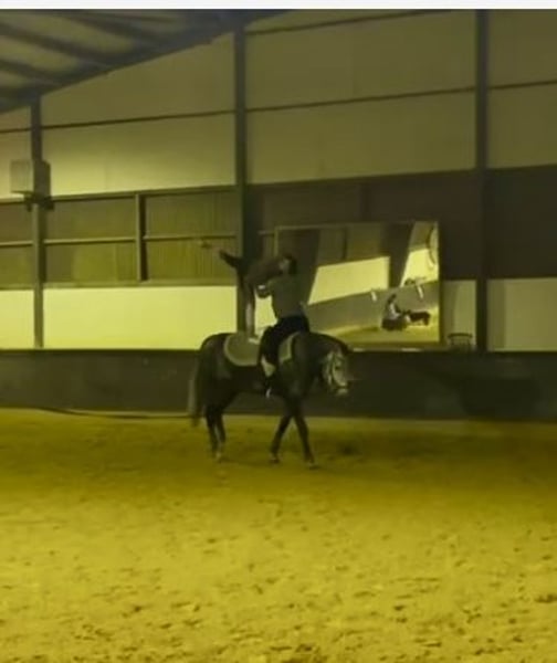 Zum Verkauf steht unsere hübsche und überaus menschenbezogene Schimmelstute Celtic Celine. Sie ist Ende 2023 aus artgerechter Aufzucht in Irland roh zu uns gekommen. Seit dem wurde sie vielseitig in Dressur, Springen und Gelände ausgebildet und auch auf Turnieren vorgestellt. Aufgrund ihrer Größe, ihres Charakters und Gemütes eignet sie sich hervorragend als Voltipferd. Sie hat hier bereits einige Volti-Trainings absolviert und zeigt sich dabei gelassen, motiviert und ohne empfindliche Punkte. Sowohl ihr Format als auch ihre Grundgangarten wurden von den Voltimädels als sehr angenehm empfunden. Wir haben den Eindruck, dass dies Celines Berufung ist, sodass wir sie gerne als Voltipferd abgegeben würden. Sie kennt schon viele Übungen in allen Gangarten und auch schon einige Paarübungen und bringt Potenzial für größere Aufgaben mit. Videos können auf Anfrage versendet werden, da der Upload hier nicht funktioniert hat. Cc hat bereits Turniererfahrung im Springen gesammelt, sie ist Spf A platziert und hat Gewöhnungsprüfung gewonnen. Auf dem Turnier zeigt sie sich unaufgeregt und nervenstark sowie nicht guckig. Dressurmäßig ist sie ebenfalls gut zu reiten, bequem und gleichmäßig in Anlehnung, jedoch grade zu Beginn eher etwas triebig. Hier benötigt sie einen Reiter mit klarer Hilfengebung, damit beide Seiten Freude an der Arbeit haben können. Cc geht gerne ins Gelände und kennt dies sowohl allein als auch zu zweit. Sie ist vertraut mit Hunden und generell wenig schreckhaft und brav im Umgang. CC liebt es geputzt und betüddelt zu werden. Selbstverständlich ist sie gesund, Schmiede und Verladefromm. Sie hatte Ende 3 j einen guten Röntgentüv. Diese Bilder können wir zur Verfügung stellen. Videos von Volti, Springen und Dressur können über WhatsApp versendet werden. Selbstverständlich ist auch ein Ausprobieren möglich, gerne aber nach telefonischer Absprache.