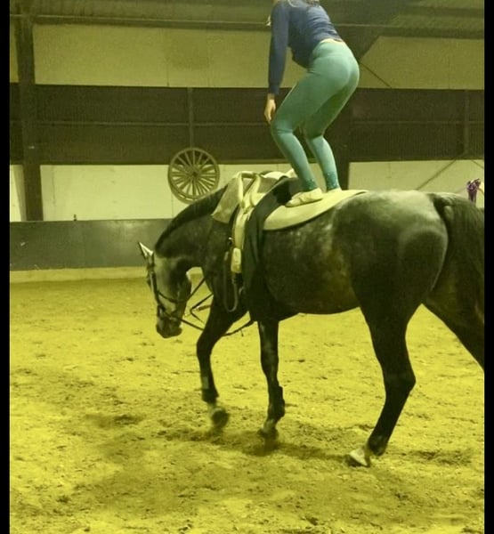 Jument polyvalente avec une première expérience en voltige et en compétition
