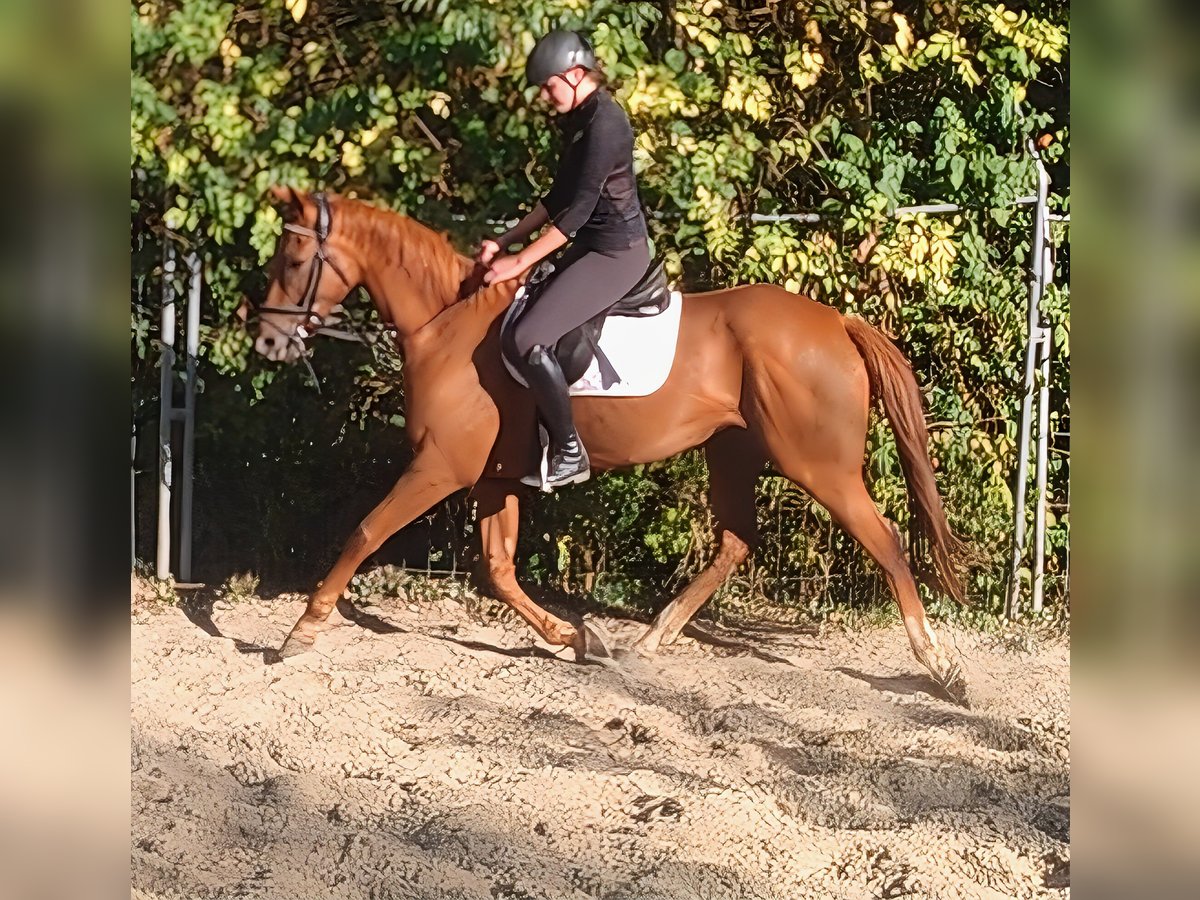6-year-old chestnut mare, approximately 165 cm tall. Pleasant to ride and friendly in handling. Not pushy and interested in new experiences. A mare with an appealing movement pattern, which has been ridden in the arena and on trails. Familiar with tractors, trucks, dogs, etc. Can be sold with complete new equipment for a small additional fee if needed. Transport can be arranged. A veterinary pre-purchase examination can also be conducted by your own veterinarian, including X-rays and blood tests. We look forward to your call at 01774289729. Written inquiries will not be answered.