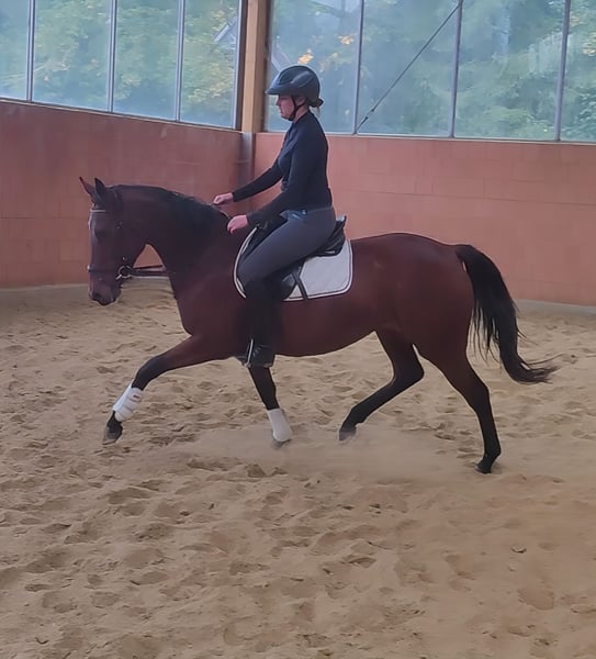 Manchmal sagen Bilder mehr als 1000 Worte. Diese bildschöne 7 jährige ca. 168 cm große Stute überzeugt durch ihr tolles Exterieur , ihre enorme Halsung und ihre elastischen , schwungvollen Bewegungen. Sie deckt auch größere Reiter gut ab ( Die junge Dame auf dem Pferd ist selbst 1,80 cm groß und es passt unserer Ansicht nach prima). Die Stute versucht stets ihr Bestes zu geben und ist bereit Neues zu lernen. Hunde, Trecker usw. kennt sie. Auch für die Zucht interessant. Bei Bedarf gegen geringen Aufpreis mit kompletten neuen Zubehör abzugeben. Inzahlungnahme möglich. Transport kann organisiert werden. Tierärztliche Ankaufsuntersuchung kann auch durch Ihren eigenen Tierarzt inklusive Röntgen und Blutuntersuchung erstellt werden. Wir freuen uns auf Ihren Anruf unter 01774289729. Schriftliche Anfragen werden Nicht beantwortet. NUR PER ANRUF