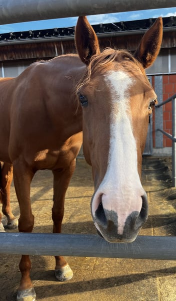 Huhu Ich suche für meine 7-jährige Irish Sporthorse Stute Ruby (ca.1,60) ein neues, liebevolles Zuhause. Ich habe sie seit etwa einem Jahr, muss mich jedoch aufgrund von finanzieller und privater Gründe schweren Herzens von ihr trennen. Ruby hat einen wundervollen Charakter, ist sehr lernwillig, mutig und aufmerksam. Sie bringt ordentlich Go mit und liebt es, sich zu bewegen und zu arbeiten. Sie wünscht sich eine feste Bezugsperson, zu der sie Vertrauen aufbauen kann – hat sie dieses Vertrauen einmal, ist sie sehr anhänglich und macht unglaublich viel Spaß in der täglichen Arbeit. Ruby kennt: • Longieren & Doppellonge • Arbeit am Kappzaum & Knotenhalfter • Stangenarbeit & Bodenarbeit • Gelände Sie ist lieb beim Schmied, brav beim Verladen und stand bereits mehrere Stunden ruhig im Anhänger. Reiterlich ist Ruby als angeritten einzuschätzen. Wir waren viel im Gelände unterwegs und arbeiten aktuell an ihrer Grundausbildung auf dem Platz. Sie reagiert sehr fein auf Hilfen und Stimme und benötigt keinen starken Druck. Wir haben bisher eine einfühlsame Trainerin an unserer Seite gehabt. Ruby ist kein Anfänger- oder Kinderpferd. Sie benötigt einen erfahrenen Reiter, der sie ruhig und konsequent weiter fördert und Freude an ihrer Ausbildung hat. Gesundheit • aktuell Umstellung auf Barhuf • sie lief zuvor mit Eisen, kommt aber auch ohne gut zurecht • bisher keine Tierarztbehandlungen notwendig • Zähne gemacht & Impfung: Januar 2025 • regelmäßig entwurmt Aufgrund der Barhuf-Umstellung wird sie unter Wert abgegeben. Es ist sehr viel Zubehör vorhanden, u. a.: • Sattel • Trense • Schabracken • Decken • Gamaschen Zubehör kann teilweise miterworben werden. Reitvideos sind vorhanden. Ruby wird nur in gute Hände abgegeben. Bei ernsthaftem Interesse freue ich mich über eine Nachricht mit kurzer Vorstellung. Liebe Grüße Mia & Ruby