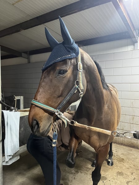 Ivana, registered under the passport name My Lucky Penny, is a very sweet mare. She has a lot of potential and learns quickly. As a Thoroughbred sport horse, she is quite forward-moving, so she requires plenty of exercise. She moves very neatly in all gaits. However, she needs a rider with experience and confidence. As long as this is in place, she is a very honest and pleasant ride! She also enjoys jumping over obstacles from time to time and does this exceptionally well. She is very gentle in handling, easy to groom, tack up, and in the stable. She loads onto the trailer easily and adapts well to new environments. When I purchased her, I had her vetted. This was some time ago, so her body has changed quite a bit — in a good way. Her hooves are now well-maintained, and she recently had a dental check-up. The dentist confirmed that she has a very good mouth and that an annual dental check is sufficient. Unfortunately, I have to part with her due to personal reasons. Therefore, I am looking for someone who can continue her education and dedicate time to her! Recently, I bought a saddle that has been fully shaped to her form. It is less than two months old. The saddle could be sold together with her, and the price is negotiable.