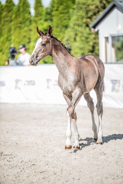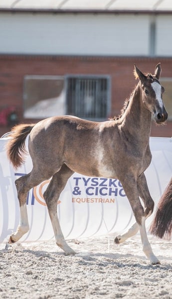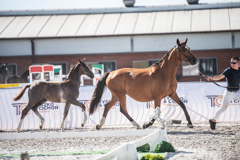 Na sprzedaż ogierek Harvest Moon rasy polski koń sportowy urodzony w 31 maja 2025 r. z bardzo dobrym obustronnym pochodzeniem. Wzrost docelowy powyżej 170 cm. Na tą chwilę wzrost ok. 140 cm, siostra 2,5 roku – 172 cm. Wyróżnia się pięknym umaszczeniem, proporcjonalną budową oraz ogromnym potencjałem skokowym. Jego siostra otrzymała w Radzionkowie notę 8.0 za siłę skoku. Niezwykle grzeczny, odważny i kontaktowy — lubi ludzi i chętnie współpracuje. Jest przyzwyczajony do wszystkich zabiegów pielęgnacyjnych, spokojnie podaje nogi i świetnie odnajduje się w codziennej obsłudze Od urodzenia utrzymywany w chowie wolnowybiegowym, przyzwyczajony do przebywania w boksie, potrafi korzystać z poidła automatycznego. Utrzymywany w dużym stadzie z końmi w różnym wieku. Regularnie szczepiony, odrobaczany i werkowany. Przyzwyczajony do zabiegów piekęgnacyjnych. Pod stałą opieką behawiorysty i fizjoterapeuty – właścicielki stajni. Możliwość obejrzenia na miejscu matki oraz 2,5 letniej pełnej siostry. Siostra widoczna na 2 ostatnuch zdjęciach i ostatnim filmiku. Matka Hana, rasy polski koń sportowy, córka ogiera Limit i klaczy Harmonia po Ludger, Ojciec Limit (o. West, m. Lipka) to urodziwy ogier z dobrym charakterem o bardzo dobrym, obszernym ruchu i imponującym galopie oraz potędze skoku, co przekazuje potomstwu. Jego dzieci startują w konkursach skokowych, jak i WKKW. Cechy odziedziczył po swoim ojcu ogierze West, którego doskonała jezdność i technika przekłada się na wysokie oceny na próbach i w konkursach. Ojciec matki, ogier Ludger został zwycięzcą ZT Łobez 2001 . Posiada ponad 120 zarejestrowanego potomstwa , w tym wiele odnoszącego sukcesy sportowe zarówno w Polsce, jak i za granicą w skokach i WKKW. Jego potomstwo odznacza się bardzo dobrą techniką skoków , charakterem i jezdnością. Równie szeroko wykorzystywany w hodowli był Laptop, dziadek Harmonii. Z tej linii żeńskiej pochodzi także klacz Chacclana, na której Jarosław Skrzyczyński odnosił sukcesy w konkursach na poziomie 1.60 m, zajmując między innymi wysokie miejsce w Finale Pucharu Świata. W linii matki znajdziemy również legendarnego ogiera holsztyńskiego Calypso II, ojca wspaniałego Contendera, który znacząco wpłynął na hodowlę koni sportowych na całym świecie i jest ojcem ponad 100 licencjonowanych reproduktorów, a jego wartość hodowlana była wielokrotnie potwierdzana wynikami potomstwa i uznaniem w licznych księgach hodowlanych takich jak księga holsztyńska, hanowerska, oldenburska czy westfalska. Najbardziej znany potomek, Contender, zdobył status ogiera światowej klasy, uznawanego za jednego z najlepszych reproduktorów koni skokowych, którego linia hodowlana rozprzestrzeniła się globalnie. Ojciec Caroly, rasy oldenburskiej, syn ogiera Calido I klaczy Cora po Contendro I, to charyzmatyczny ogier światowego formatu uznany w księgach PZHK, OS, hanowerskiej, meklenburskiej, westfalskiej, DSP. Zwycięzca Bundeschampionatu, rekordzista aukcji P.S.I., ojciec koni zajmujących płatne miejsca na międzynarodowych parkurach. Obdarzony imponującą techniką i możliwościami, które bez wątpienia przekazuje na swoje potomstwo. Wiele z potomstwa zajmuje płatne miejsca na zawodach do poziomu 145 cm. Caroly po zwycięstwie w prestiżowym Deister-Championat w Dobrock, zakwalifikował się do Mistrzostw Niemiec i wygrał pod Bastianem Freese obie rundy kwalifikacyjne z wynikami 9,0 i 9,2 pkt zmierzając wprost do finału. W finale sędziowie ponownie przyznali mu noty powyżej 9,0 pkt za jego wyróżniająca się regularność, koncentrację i wspaniałą jezdność. Caroly zdobył tytuł Mistrza Niemiec w kategorii 5-letnich koni skokowych z oceną 18.8! Ojcem ogiera Caroly jest epokowy Calido I. Wśród jego potomstwa wyróżniają się: ogier Coupe de Coeur, który zajął piąte miejsce w Mistrzostwach Europy i trzykrotnie zdobył tytuł Mistrza Niemiec, a także klacz Nobless M, która wraz z Piusem Schwitzerem /SUI zdobyła brązowy medal zespołowo na Igrzyskach Olimpijskich. Wygrane potomków ogiera Calido I w samych Niemczech wynoszą ponad 4,42 miliona euro. Licencje hodowlane uzyskało ponad 84 synów, ponad 564 klacze uzyskały wpis do Księgi, w tym 71 z premią państwową. Caroly pochodzi z oldenburskiej rodziny klaczy CADARINA , z której wywodzą się również takie ogiery jak Ozon de Encinasola i Piccadilly, oraz wiele ciekawych koni skokowych: Prestige (skoki 160), Contendra 22 (skoki 155 cm), Pandur (skoki 150 cm) i wiele innych.