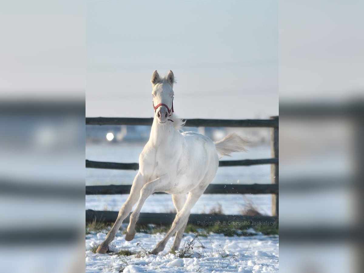 Very rare: cremello warmblood colt. Good confirmation and gaits. Prospect for the future. His half siblings are in France, Belgium and Poland. Pedigree: https://www.horsetelex.com/horses/pedigree/2716486/gallardo-jask Sire Diamond Dealer-J https://www.colored-stallions.com/diamond-dealer-j Other horses: https://sites.google.com/grupadrewnex.pl/palominojaskulscy