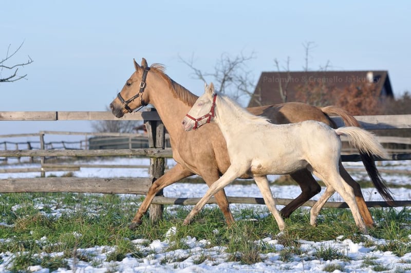 Sehr selten: cremello Warmblut-Wallach. Gute Konformation und Bewegungen. Vielversprechend für die Zukunft. Seine Halbgeschwister befinden sich in Frankreich, Belgien und Polen. Pedigree: https://www.horsetelex.com/horses/pedigree/2716486/gallardo-jask Deckhengst: Diamond Dealer-J https://www.colored-stallions.com/diamond-dealer-j Weitere Pferde: https://sites.google.com/grupadrewnex.pl/palominojaskulscy