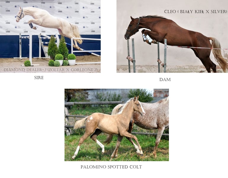 Amazing palomino spotted colt, very noble, very good confirmation and gaits. Pedigree https://www.horsetelex.com/horses/pedigree/2716485/casanova-jask Sire: https://www.colored-stallions.com/diamond-dealer-j Dam: https://youtu.be/0RlAnKEdDO0?si=g-sGvpuKX0I4PeyC Other horses: https://sites.google.com/grupadrewnex.pl/palominojaskulscy Facebook: https://www.facebook.com/PalominoJaskulscy