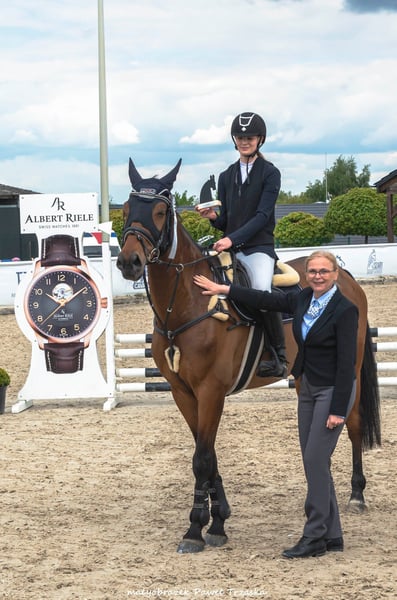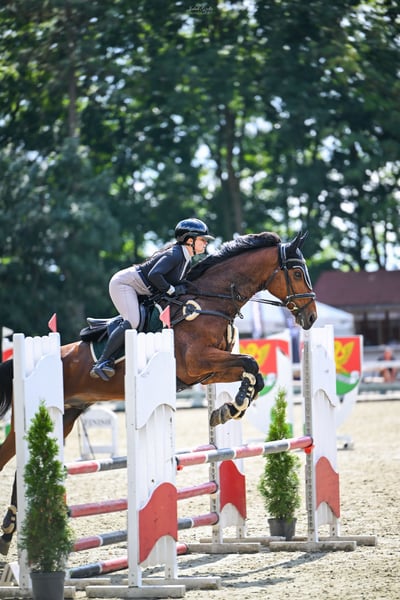 NIXON ist ein 12-jähriger Wallach mit einer Stockmaß von 167 cm. Er hat eine korrekte Körperhaltung, starke Hufe (vorne beschlagen). Das Pferd besticht durch sein engelsgleiches Wesen, ist unkompliziert und äußerst brav. Es ist sehr leicht zu reiten, verzeiht Fehler und ist stets auf der anderen Seite des Hindernisses, niemals verweigert es den Sprung. Ein idealer Lehr- und Freizeitpartner für Kinder und Anfänger, perfekt zum Einstieg in den Springsport und zum Ablegen von Abzeichen oder Lizenzen. Er ist bis zur Klasse P ausgebildet. Der Galopp ist gleichmäßig, er achtet nicht auf bunte Hindernisse oder Untergründe. Das Pferd besitzt aktuelle, klare Röntgenbilder vom Ende August. Preis: 40.000 zł, inklusive passendem Zubehör.