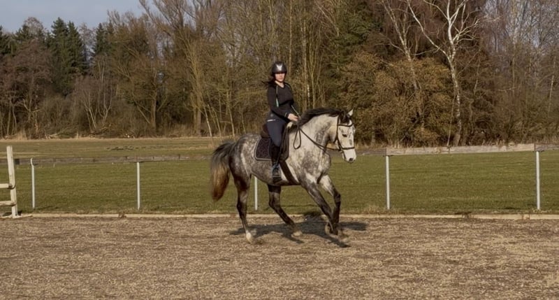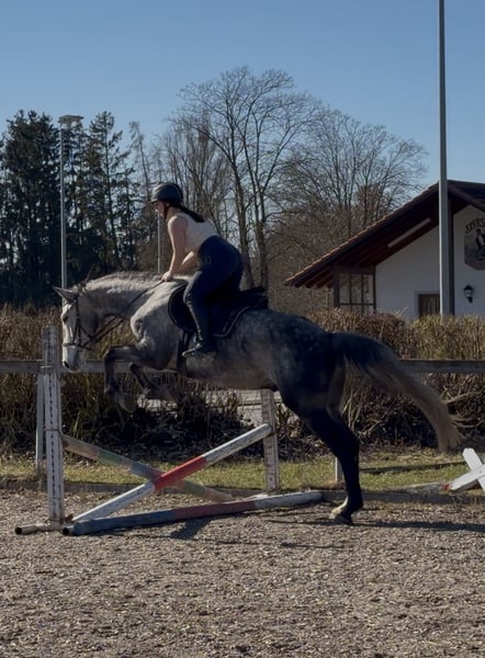 Schweren Herzens suche ich für meinen 4-jährigen Wallach, ein neues Zuhause. Er ist ein Polnisches Sportpferd, väterlicherseits KWPN gezogen, mit interessanter springbetonter Abstammung. Er ist ein großrahmiger, schicker Wallach mit angenehmem Wesen, viel Ausstrahlung und einem tollen Kopf. Er wurde bei uns in Ruhe und ohne Druck aufgebaut und zeigt sich dabei sehr ehrlich, lernwillig und menschenbezogen. Unter dem Sattel ist er seit ca. 4–5 Monaten richtig in Arbeit. Wir haben den Schwerpunkt bewusst auf Gelände, Vertrauen und Alltagssicherheit gelegt. Er geht allein und in der Gruppe brav ins Gelände, ist gut händelbar und zeigt sich auch auf fremden Plätzen unkompliziert. Auf dem Platz kennt er die Grundlagen und wird aktuell wieder weiter angeschoben. Er macht das sehr gut, lernt schnell und möchte gefallen. Erste kleine Sprünge hat er ebenfalls gemacht und zeigt sich dabei motiviert, mutig und ehrlich. Aufgrund seiner Abstammung und seines Wesens ist er als vielseitiges Nachwuchspferd interessant — für jemanden, der ein junges Pferd weiter in Ruhe ausbilden möchte. Über den Winter wurde er nochmal weggestellt, da er noch einmal deutlich gewachsen ist. Nun wird er wieder angeschoben und entwickelt sich sehr schön weiter. Im Umgang ist er freundlich, offen und gut zu händeln. Er lässt sich führen, putzen, satteln und ist im Alltag unkompliziert. Auch Kinder können ihn führen und auf ihm sitzen. Trotzdem ist er natürlich kein Anfänger- oder klassisches Kinderpferd, sondern ein junges Pferd, das altersentsprechend weiter gefördert werden möchte. Er kam ursprünglich mit wenig Vertrauen zum Menschen zu uns und wurde hier mit Ruhe und Geduld aufgebaut. Heute zeigt er sich offen, freundlich und neugierig. Für ihn wünsche ich mir einen pferdeerfahrenen, fairen Menschen, der ihn weiter mit Gefühl begleitet. Eine große AKU inklusive vollständiger Röntgenbilder von Hals bis Fuß liegt vor. Ohne Befund ! Er wird nur aus persönlichen Gründen und krankheitsbedingt meinerseits schweren Herzens abgegeben. Bei interesse gerne melden! Freispringvideos sind vom letzten Jahr, am Wochenende werden neue gemacht