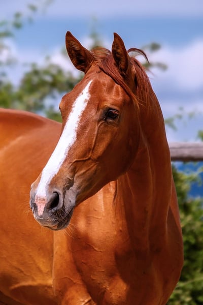 Nacido en 2020, castrado, alazán claro, 4 patas blancas más una mancha en el vientre. Criado en extensos pastizales, colinas y cerros en una manada de diferentes edades. Desparasitado regularmente, alimentado con piensos variados con vitaminas y probióticos. Corrección dental realizada por un dentista desde que cumplió un año y medio. Sabe estar atado, enseñado a permanecer tranquilo durante los cuidados, se mantiene calmado al ponerle protectores, mantas, cabezadas. Es un caballo amable en el manejo y contacto con las personas, curioso, seguro en el campo tanto montado como a pie. Hermosos cascos grandes. En invierno lleva manta. A la edad de un año se le removieron chips en las articulaciones del corvejón; debido a su tamaño y ritmo de crecimiento, revisamos rutinariamente las patas, lo que permitió detectar rápidamente lo que debía eliminarse para que pudiera seguir creciendo sin dañar las superficies articulares. Preparado bajo la silla por Adam Susłowski. Inicialmente domado.
