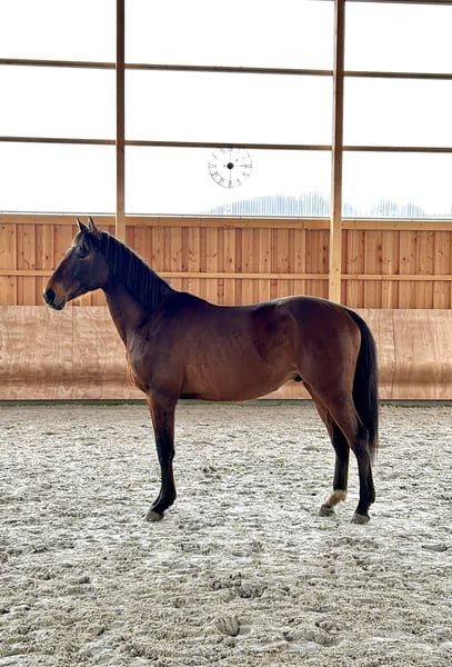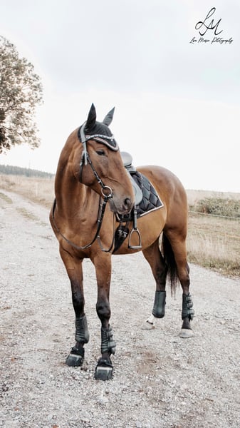 Looking for the perfect match. Kampus is an 8-year-old, 15.8 hh gelding, originally bred in Poland, with a background in show jumping. He is brave, outgoing, motivated, curious, and very people-oriented. For the past four years, Kampus has been living in a mixed herd in a herd-based stable environment. He demonstrates clear gaits in all three basic movements. Due to time constraints, Kampus has been gently backed and started under saddle. He especially enjoys varied training sessions in the field and over jumps. He is familiar with ground work and free jumping and makes an excellent, reliable partner for light riding. His training has been biomechanically sound and health-preserving, which Kampus wishes to continue in the future to maintain his Kissing Spines diagnosis without symptoms. He needs a dedicated owner who communicates clearly and shares joy in further development within recreational riding. Kampus has been regularly vaccinated, dewormed, and dental care has been provided. He is currently transitioning to barefoot, is loading well, and is farrier-friendly. For sincere interest and open questions about this ehorses gem, please feel free to contact me privately.