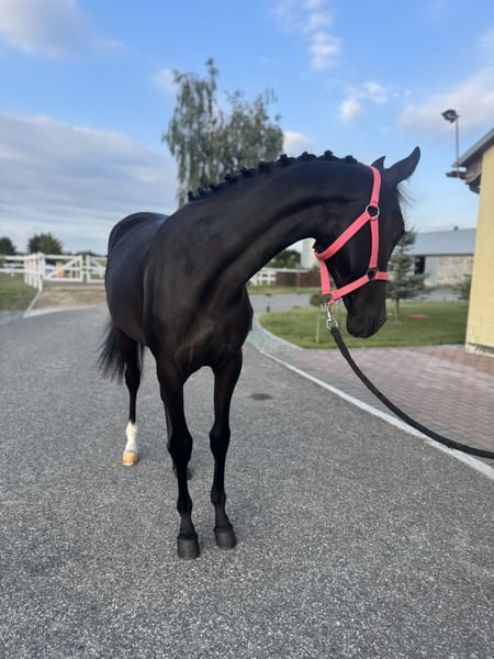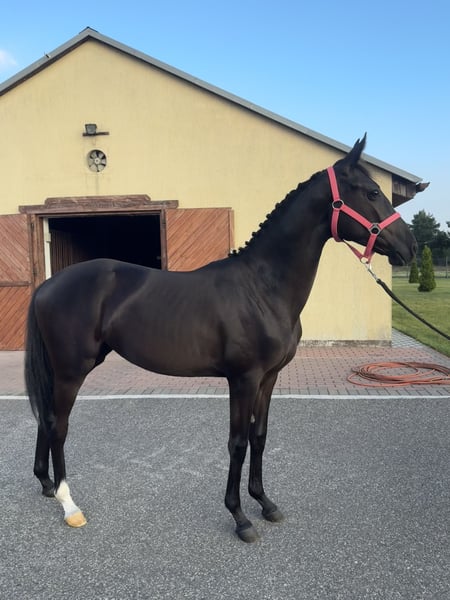 Fantazja-T urodzona 22.04.2024 Rasa wielkopolska Matka F-ŁEZKA Ojciec PARAMETR Klacz o eleganckim wyglądzie w bardzo żeńskim typie i doskonałych predyspozycjach sportowych. Klacz zdrowa, energiczna, bezproblemowa przy wszystkich zabiegach pielęgnacyjnych, kowalu oraz na myjce. Przyjazna dla człowieka jak i dla innych koni w stadzie. Nauczona pracy na lonży w obie strony.
