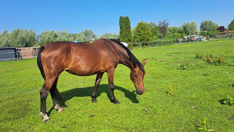 Unfortunately, I have to part with my 24-year-old mare. She is vaccinated and holds an international passport. She is rideable and currently lives in a paddock with five other horses.