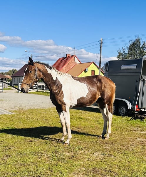 Zum Verkauf steht eine schöne Stute der Rasse Polnisches Sportpferd. - **Geburtsjahr:** 2023 - **Farbe:** Schecke - **Einsatzgebiet:** Springen Dies ist ein ausgezeichnetes Angebot für Personen, die ein junges, talentiertes Pferd für die weitere Ausbildung im Springen suchen. Die Stute zeichnet sich durch ein hervorragendes Temperament und großes sportliches Potenzial aus. Ich lade Sie ein, Kontakt aufzunehmen, um weitere Informationen zu erhalten und einen Termin zu vereinbaren. Verpassen Sie nicht die Gelegenheit, Besitzer dieser außergewöhnlichen Stute zu werden!