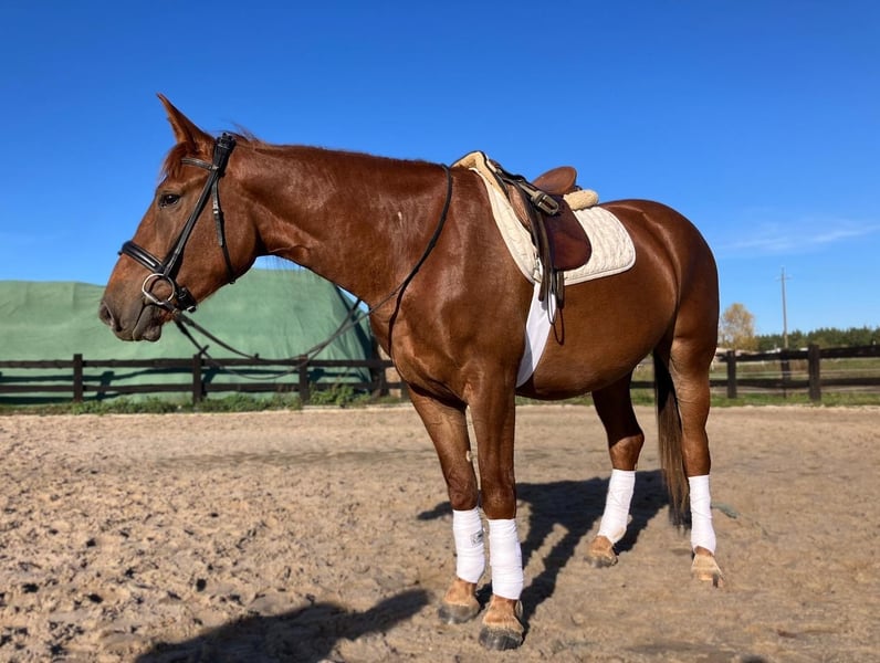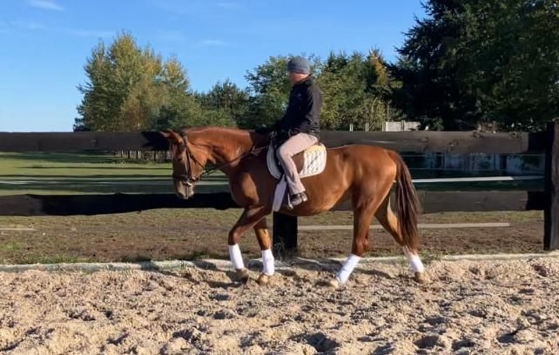 Zum Verkauf steht die 3,5-jährige Stute Markiza. Sie hat ein Stockmaß von ca. 160 cm und überzeugt mit ihrem freundlichen Charakter, ihrer Gelassenheit und ihrer Lernbereitschaft. Markiza wurde korrekt und schonend angeritten und arbeitet sicher in den drei Grundgangarten auf dem Reitplatz. Sie zeigt eine angenehme Arbeitseinstellung und bleibt stets rittig und ausgeglichen. Sie geht sowohl alleine als auch in der Gruppe ins Gelände. Im täglichen Umgang ist sie sehr brav, menschenbezogen und unkompliziert. Sie kennt sowohl Boxenhaltung als auch tägliche Weide- bzw. Paddockzeiten und ist verträglich mit anderen Pferden. In der Herdenhierarchie steht sie in der Mitte und verhält sich sozial und konfliktfrei. Markiza ist an alltägliche Stallarbeiten gewöhnt, kennt landwirtschaftliche Maschinen sowie verschiedene Haustiere und Nutztiere. Sie lässt sich problemlos putzen, führen, anbinden und verladen. Markiza ist eine Stute, die sich sowohl als Freizeit- und Familienpferd hervorragend eignet, als auch perspektivisch für den kleinen Sport. - Die Stute befindet sich in Polen, ca. 70 km von Görlitz entfernt. - Transport ist möglich. Link zum Video vom Training auf dem Reitplatz: https://youtu.be/croEhIsA3Dk