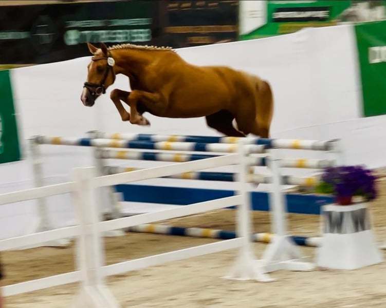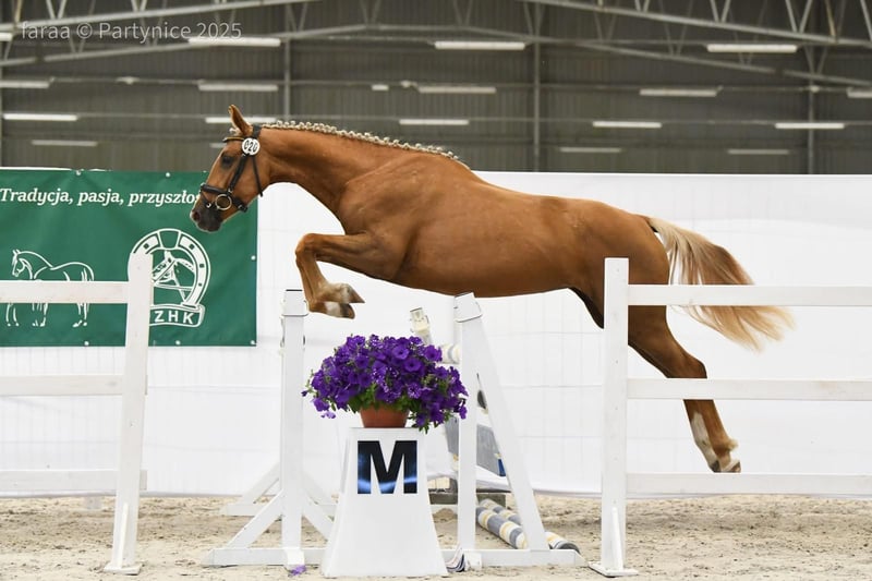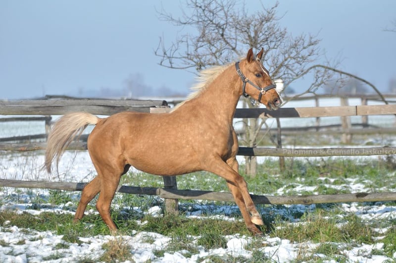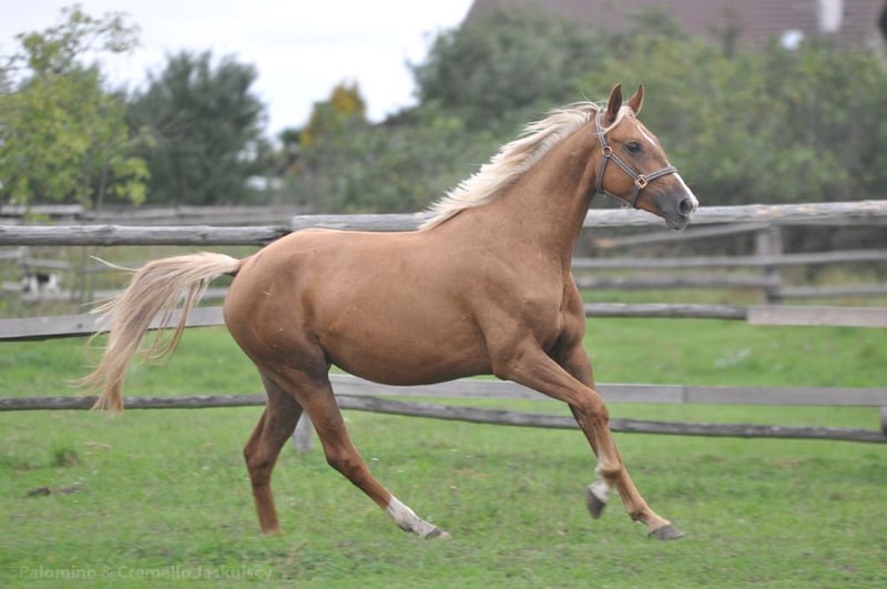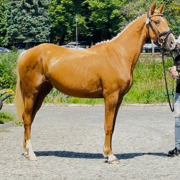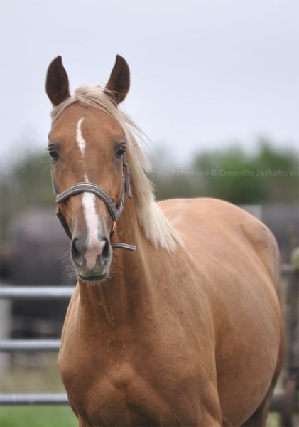 Special mare with sport pedigree and golden color. A real eyecatcher. She is now about 160cm (almost 3 years old). Sire is 172cm and dam is 165cm. Full brother sold to Belgium on Auction as a weaning. Prospect to sport and breeding. Other horses available: https://sites.google.com/grupadrewnex.pl/palominojaskulscy Facebook: https://www.facebook.com/PalominoJaskulscy