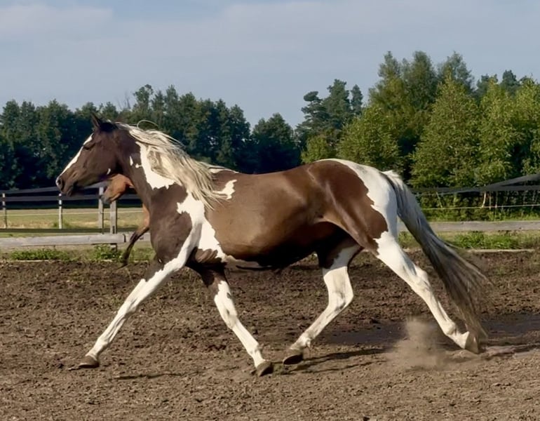 **The person posting the ad is NOT the owner of the horse.** For sale is the beautiful, tall mare Luna Jay (approximately 16.1 hh). Luna was born in March 2022. She is an intelligent, sweet, and friendly mare with elastic and expressive basic gaits. Although she is a piebald, she has an excellent pedigree: her grandparents were Holsteiners, Hanoverians, and Westphalians – another plus for her breeding! Luna was originally purchased for breeding and small-scale sport, but due to changes in her owner’s circumstances, she has made the difficult decision to sell her. Pedigree: https://www.horsetelex.com/horses/pedigree/2661798/luna-jay