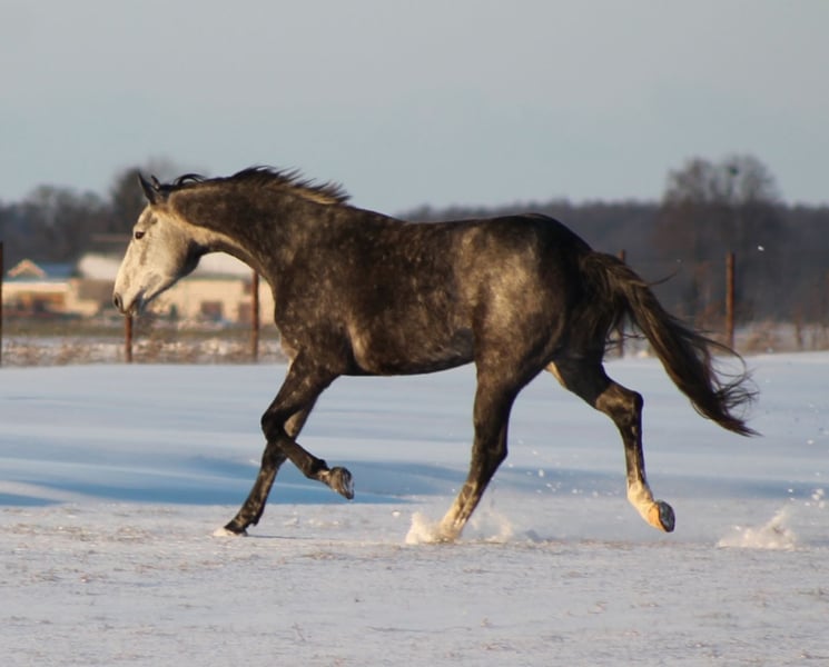Nowego domu szuka przyszłościowa, zdrowa i młoda 5 letnia klacz Rondine Fly po Chacfly PS. Klacz wysoka, 173 cm. https://www.horsetelex.com/horses/pedigree/2373216/rondine-fly Klacz jest zajeżdżona, ale wymaga dalszej pracy, która została przerwana ze względu na użytkowanie jej w hodowli. Bardzo wygodnie i miękko nosi, klacz z obszerną foule w galopie. Koń obyty z podstawowymi zabiegami pielęgnacyjnymi- w tym kowal, szczepienia i inseminacja. Ma doświadczenie w podróżach przyczepą. Była w zeszłym roku na czempionacie w Racocie oraz w Cichoń Dressage. W zeszłym roku urodziła pięknego ogiera po Varihoka du Temple, który od razu po osadzeniu znalazł nabywcę. link do filmu z czempionatu w Jarużynie, jako dwulatka: https://www.youtube.com/watch?v=gUUx9lYF76k klacz do tej pory na czempionatach uzyskała: III msc w klasie koni rocznych na wystawie Młodzieży Hodowlanej Wszystkich Ras- Kaleń Towarzystwo (BeckerSport), 2022 r; III msc w Czempionacie w Skokach Luzem 11.2023 w Galinach. Babka, prababka- klacze z niemiecką premią hodowlaną. Z ciekawszych informacji- Prababka Archipelia dała klacz chodzącą konkursy 160; ciotka sprzedana jako źrebię na elitarnej aukcji w Niemczech. Rondine jest źrebna na 2026 rok ogierem Diaron z oferty Schockemoehle. Termin porodu wyznaczony na 1.06.2026 Sprzedaż z powodu zmiany wizji hodowlanej. Klacz nigdy nie była kontuzjowana, jest w pełni zdrowa. Klacz sprzedaję jako źrebną, ale mogę również poczekać i sprzedać po urodzeniu i osadzeniu źrebaka. Koń jest u mnie od odsadka