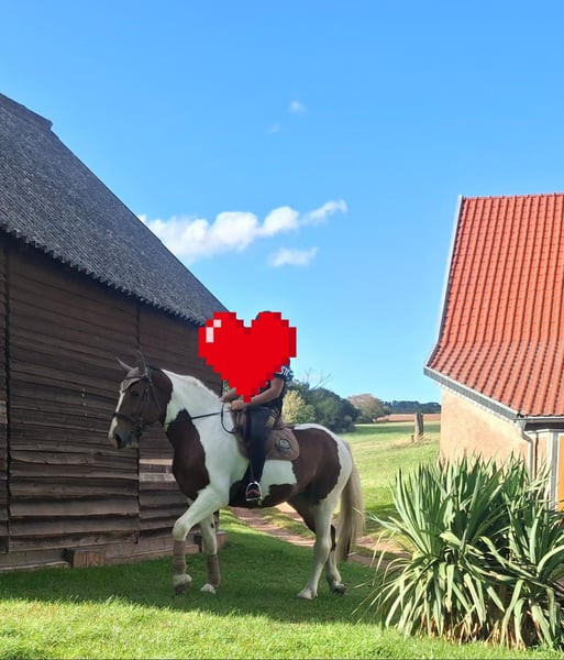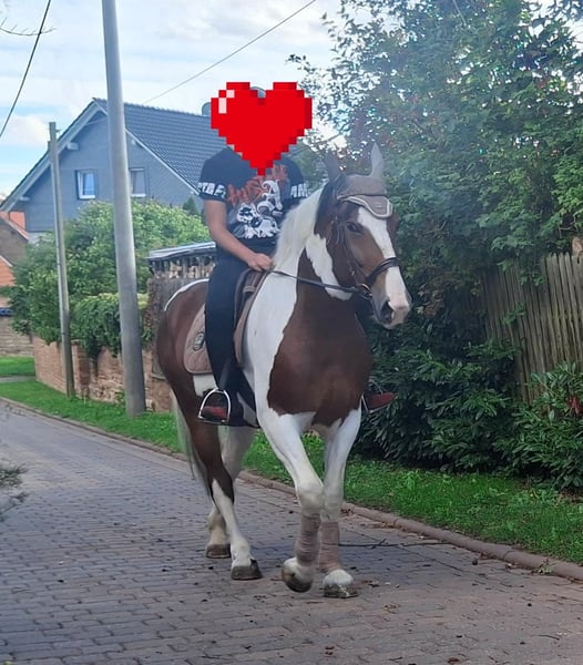Leisurely ridden Pinto mix mare - 6 years - 1.65m She is a pretty mare with a friendly disposition. She is easy to ride, comfortable to sit on, and safe in the terrain. Familiar with English as well as Western riding. Used to trail riding and leisure rides. Also well-suited as a therapy horse, as she is clear-headed, calm, and relaxed. Shoeing and loading are no problem. If interested, please leave a message.