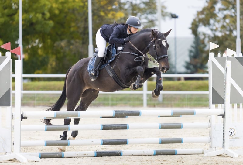 For sale: a 6-year-old mare, standing at 165 cm at the withers. This horse is suitable for a riding child, as she is gentle and well-behaved—no biting, kicking, bucking, or rearing. She is easy to keep in a herd and gets along well with other horses. She enjoys jumping, is easy to ride, and is not spooky or nervous. She loves human contact and demonstrates significant strength, especially in jumping, where she is quick and agile. The mare was introduced to riding later in life but has been trained up to 100 cm, with individual jumps reaching 110 cm, and has the potential for much higher. She has participated in training outings and has successfully competed in her first competitions. She is comfortable riding alone or in a group, making her suitable for eventing (WKKW). She is resilient and in continuous training. She has excellent pedigree: her sire, Roland, is a son of Ramiro’s II / Ramiro Z, and her dam, Rakija, is by Efez / Czuwaj. The horse has shown no health issues and holds a clean TUV (health certificate) valid until December 2024.