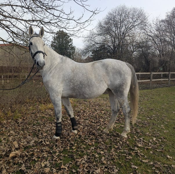 For sale is Gloria, a 7-year-old Polish mare with a strong build and three balanced gaits. She is sensitive to the rider's aids, easy to ride, and trained in dressage at levels E/A and jumping at level E. She is confident and experienced in the terrain, herd-friendly, and uncomplicated when it comes to the farrier and loading. She requires a confident rider who can establish clear boundaries, especially in handling; once this is done, she is very manageable and well-behaved. Due to her dominant nature, she is not suitable for a riding school environment and is being sold well below value. She is healthy and vaccinated.