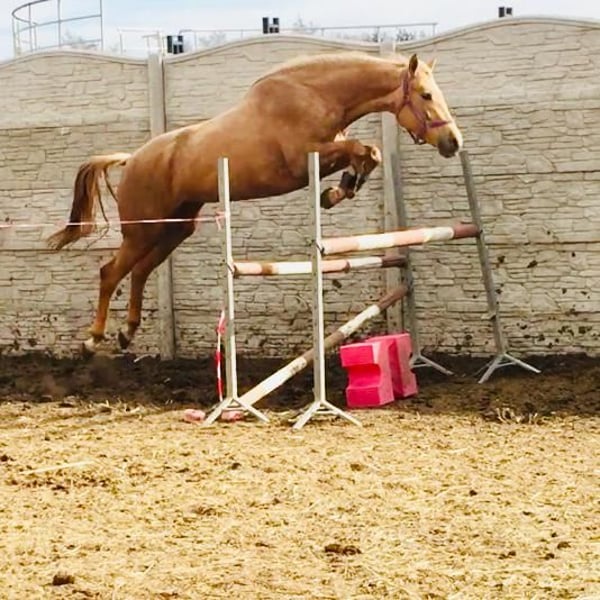 Palomino warmblood mare. Very good confirmation and gaits. She was ridden as 3,5 years old under saddle and later as a broodmare she gave us 5 very good foals which are in Poland, Belgium and France (last 5 photos). Very good broodmare. Not in foal due 2026. Interesting pedigree from jumping lines: https://www.horsetelex.com/horses/pedigree/2326287/gloria-s Other horses: https://sites.google.com/grupadrewnex.pl/palominojaskulscy Facebook: https://www.facebook.com/PalominoJaskulscy