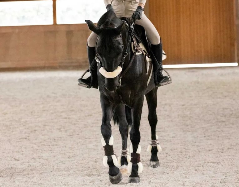 Elegant Portuguese Sport Horse Gelding – Perfect for the Ambitious Rider We are pleased to offer a stunning black Portuguese Sport Horse gelding, born in 2010, standing at 164 cm. This well-built and versatile horse combines athletic ability with a calm and cooperative temperament, making him an excellent choice for riders seeking a reliable partner in jumping disciplines.