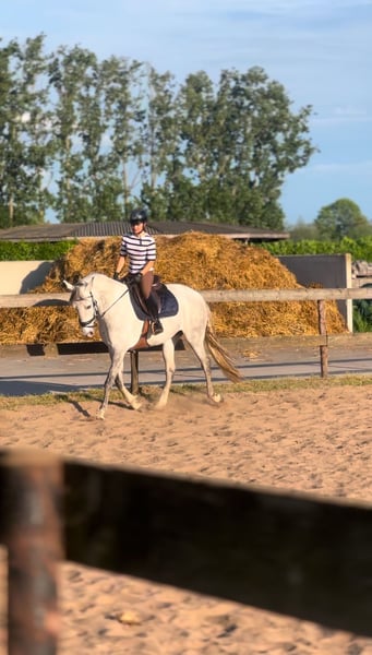 Sweet and versatile mare for sale – looking for a 5-star home With a lump in our throats, we are offering our beautiful mare Bela, affectionately called Bisou, for sale. She was born in 2016, an elegant grey mare from the Portuguese studbook, and has brought our family immense joy over the past two years. **Health & Care** Gender: Mare Age: 9 years Vaccinations: Up to date Microchip number: Available upon request No stable vices, well-behaved with the farrier and veterinarian **Character & Talents** Bisou is a proud lady with a heart of gold. She loves cuddles, is gentle and reliable in her interactions. She is suitable for dressage and outdoor riding, with a clear passion for jumping. She approaches obstacles enthusiastically and confidently, easily clearing courses of 80 cm, with some jumps reaching 1 meter. According to her trainer, she has reached her limit and is ready for a more specialized jumping horse. **Our Experience** We bought Bisou when our daughter was 12, looking for a reliable horse she could ride independently. As self-employed parents, we had little time or expertise with horses, but our daughter already rode at the riding school and dreamed of owning her own horse. Bisou was the perfect match: she has taught her so much, and their bond is truly special. Now, at 14 years old, our daughter wishes to compete in jumping competitions. With heavy hearts and tears, we have decided together that it’s time to find a new horse that can support her further in her ambitions. **What are we looking for for Bisou?** A loving home where she receives the attention, exercise, and cuddles she deserves. We hope she can find a place where she can make her new owner as happy as she has made us. If possible, we would love for our daughter to visit her occasionally. **Interested?** Feel free to send a message or call us at +32 492 42 48 68. Videos and additional information available upon request.