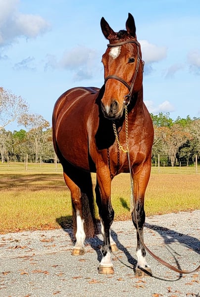 This gorgeous Warmblood gelding is 7years old and measures just over 16.1HH, to mature to 16.2-16.3HH. His bloodlines include the famous Holsteiners Con Air by Contender and Henry Jotas lines. With his impeccable conformation, perfect hunter canter, and flawless jumping form, this 10+ mover is destined to win big! Lalo has what it takes to be your next top SHOW HUNTER! As a yearling, Lalo won 1st place in hunter breeding and 5th place in USHJA Zone Horse of the Year for hunter breeding. He is now ready to hit the show circuit and bring home ribbons in the hack classes and over fences. Lalo has had extensive flatwork training inside the arena and out. He will walk, trot, canter on a loose rein for hunters or collect into a frame for dressage. He rides nicely off of the seat and leg and has a soft mouth. Lalo jumps 2’3” and schools cross country. He will be ready to show 2’3”-2’6” this year and is eligible for the green hunter divisions. On his days off from schooling dressage and jumping, Lalo enjoys riding Western and going for trail rides. He has mastered all the Western basics – a great stop, back up, lateral work, yielding the forequarters/hindquarters, etc. He is good with traffic and does not mind riding out alone. He has been hauled all over for trail obstacle practice, riding lessons, and local horse shows. While Lalo has clear hunter potential, he could easily shine in dressage, equitation, jumping, or eventing. He is VERSATILE and could excel in any discipline! Lalo is a barn favorite with excellent manners and a sweet, willing temperament. He could easily be brought along by an adult amateur or junior rider in a program. He is easy to load, haul, tack, bathe, braid, trim, etc. Lalo is microchipped, lifetime registered with USHJA, has a USEF ID, and has his registration passport from Argentina. He is SOUND and up-to-date on everything with no maintenance. He is a barefoot easy keeper and has a complete pre-sale veterinary exam on file. Lalo is located in Brooksville, Florida. We can help the winning bidder arrange shipping ANYWHERE! Bid last to make this stunning imported Warmblood gelding yours