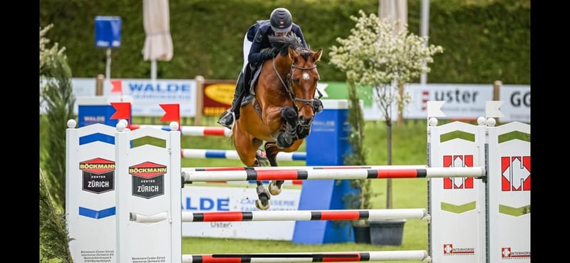 Umour ist ein lustiger, liebenswerter Wallach Er wurde sorgfältig ausgebildet (keine Schnellbleiche), und er brauchte diese Zeit auch, da er als junges Pferd sehr charakterstark war. Seine Mutter ist bis GP/Nationenpreise erfolgreich gewesen, wie auch sein Vater Urano de Cartigny. Derzeit ist er bis Prüfungen 135 cm sicher unterwegs. Er ist auch schon über 140 mit 0 gesprungen, höher jedoch ist noch über seiner Komfortzone. Der Wallach ist im Alltag eher bequem und etwas faul, aber fein zu reiten. Im Gelände ganz brav. Im Parcours kann er auch mal frisch und stark sein, will immer rüber, und hat eine gute Grundvorsicht, jedoch nicht ängstlich und verzeiht auch mal einen Fehler. Im Umgang ist er sehr verschmust und sehr brav, will aber immer, dass man ihm seine Aufmerksamkeit schenkt;>), und dies macht er auch mal mit lustigem Schabernack. Im Exterieur ist Umour eher quadratisch, hat einen kurzen Hals, weich zu sitzende Bewegungen. Umour ist kein Anfängerpferd, da er doch mal austesten kann, wer der Chef sein will. Er ist aber durch seine kompakte Art und sein reaktives Springen sicher ein Pferd, mit dem ein Amateur bis Kat. 130/135 Freude haben kann.