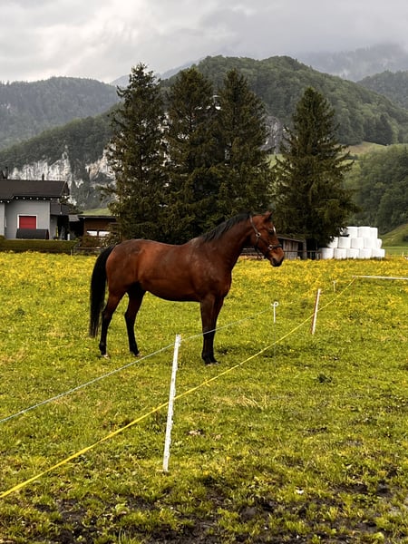 Aufgrund Nachwuchs und Zeitmangel steht Boby zum Verkauf! Boby ist 165cm gross und 18 Jahre alt. Er ist eine total coole Socke allerdings KEIN Pferd für Anfänger da er nicht ganz Verkehrssicher ist und viel Go hat. Boby ist aber jederzeit händelbar. Bei mir wird er seit 3-4 Jahren Freizeitmässig geritten freut sich auch über einige Sprünge oder Dressurlektionen! Schon länger hat er die Diagnose Spat was ihn aber nicht einschränkt. Ich wünsche mir einen Plaz an dem er geliebt wird wie er ist und noch viele Ausritte erleben darf! Ganz klar Plaz vor Preis und kein Notverkeuf Melde dich wenn Boby dein Intresse geweckt ha!🍀🐎 Jana