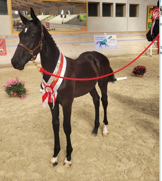 Sprzedaję mojego szwajcarskiego ogiera w typie ciepłokrwistym, urodzonego 07.05.2023. Obecnie przebywa jeszcze na pastwisku dla źrebiąt, gdzie może pozostać. W kontaktach jest bardzo miły i raczej towarzyski, ma spokojny charakter. Jednak w grupie z pewnością nie jest najsłabszy. Życzę sobie dla niego wspaniałego miejsca, gdzie będzie mógł się rozwijać. Jako źrebię zdobył tytuł mistrza Szwajcarii. Posiada wszystko, co potrzebne do wspaniałej kariery w ujeżdżeniu. Odpowiadając na jego wiek, jest jeszcze surowy i przebywa z kolegami na pastwisku. Chętnie udzielę dodatkowych informacji telefonicznie.