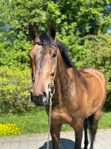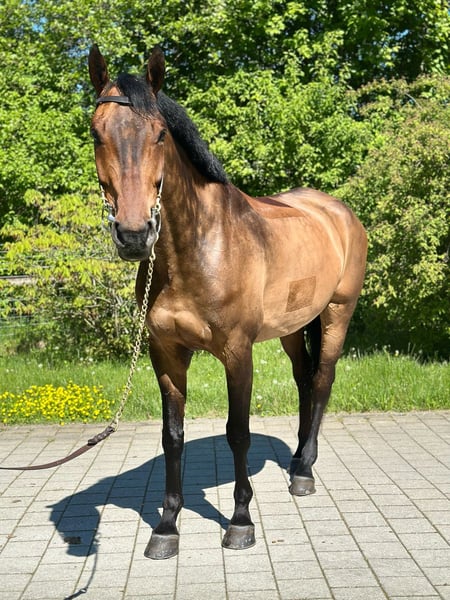 Beautiful, 6-year-old gelding with a lot of quality and heart. He comes directly from the breeder and is from first hand. His history is completely traceable. He is very well trained, rideable, and easy to ride – ideal for an ambitious amateur. Well-grounded in basic training, already successful in competitions up to 125. Brave, uncomplicated, people-oriented – occasionally shows a playful and charming exuberance. Jumping, ambitious leisure and competition rider. Directly from the breeder, brave in the course, easy to ride, performance-oriented, and motivated. A true sport partner with a future, who enjoys being involved!
