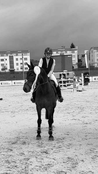 Kleopatra è una splendida cavalla di 10 anni. È completamente facile da gestire. Si adatta perfettamente come cavallo da passeggio; si comporta molto bene sia da sola che in gruppo durante le uscite. È abituata al traffico stradale e non ha paura di trattori, mucche, ecc. È tranquilla anche dal maniscalco. È molto nervosamente stabile e paziente. Un vero cavallo affidabile! Spesso accompagna una giovane ragazza in escursione. È piacevole da cavalcare anche in arena. Può anche saltare, ma principalmente la vendiamo come cavallo da passeggio. Per ambizioni più piccole fino a 95 cm, è anche disponibile. Attualmente si trova in gruppo con un gelding. Per interesse o ulteriori domande, potete contattarmi tranquillamente via WhatsApp al numero: 076 210 06 14.