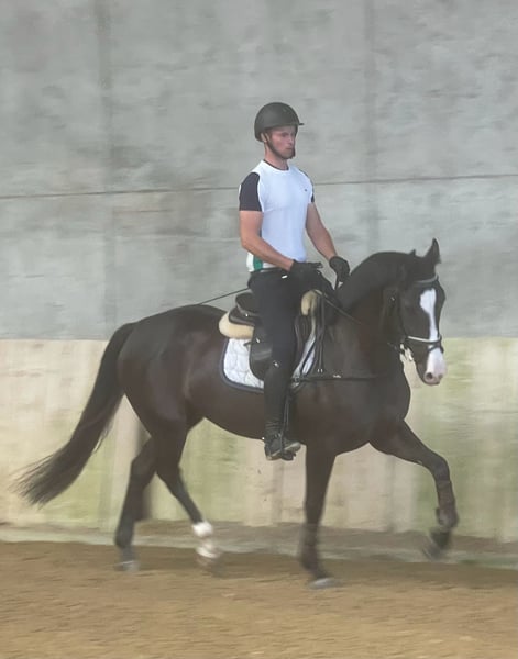 Wunderschöne, dunkelbraune Schweizer Warmblut-Stute, geborene im Jahr 2021. Sie überzeugt mit ihrem modernen Exterieur und mit ihrem Charakter. Sie zeigt sich im täglichen Umgang wie auch unter dem Sattel stets brav, aufmerksam und lernwillig. Bereits solide angeritten, präsentiert sie sich in der Dressurarbeit gut ausbalanciert und sicher in den Grundgangarten. Auch im Gelände zeigt sie sich zuverlässig. Im Springen hat sie bereits kleine Parcours souverän gemeistert und zeigt dabei Vermögen, Technik sowie eine tolle Einstellung. Ein ideales Nachwuchspferd für Reiter, die sich eine unkomplizierte, gut ausgebildete junge Stute mit Potenzial wünschen. Bei Interesse stehe ich gerne für weitere Informationen und eine Besichtigung zur Verfügung.