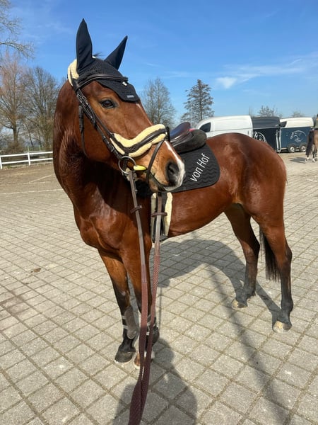Coco est une belle jument brune de 7 ans, athlétique et avec beaucoup de sang. Elle montre une technique de saut soigneuse et est sensible à la main. Elle est également très motivée dans l'arène de dressage et montre de bonnes allures étendues et élégantes. Elle a concouru jusqu'à 110 cm et a été placée jusqu'à 105 cm. Coco aime sortir en balade, que ce soit seule ou en groupe. Elle est très bien élevée dans le champ, en groupe et seule. Contactez-nous pour plus de vidéos et d'informations. Nous répondons en anglais, allemand, français, portugais et espagnol.