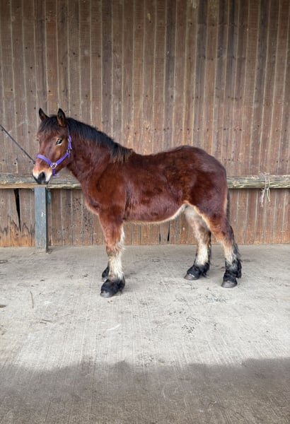Poulain mâle comtois de 1 an Manipulé et très proche de l’homme