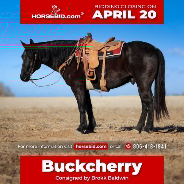 ⚜️𝐭𝐡𝐞 𝓔𝓵𝓲𝓽𝓮 𝐒𝐩𝐫𝐢𝐧𝐠 𝐂𝐥𝐚𝐬𝐬𝐢𝐜⚜️ Happening now thru MONDAY | APRIL 20th - Available EXCLUSIVELY on HorseBid's website! For more details and to register visit: www.Horsebid.com CONSIGNOR CONTACT: Brokk Baldwin 806-418-1941 LOCATION: Amarillo, TX BREED: Draft x Quarter horse REGISTERED: No REGISTERED NAME: Buckcherry COLOR: Blue roan HEIGHT: 15.2 AGE: 11 GENDER: Gelding 🔥 Buckcherry – Gentle, Big-Bodied Ranch & Trail Horse 🔥 If you’re looking for a gentle, all-around ranch & trail horse with size, color, and a kind mind, “Buckcherry” fits the bill! Buckcherry is a Draft x Quarter Horse gelding who combines eye-catching presence with real-world usability. He has the size and substance you expect from a cross like this, along with the disposition that makes him a pleasure to be around every day. He has been used on the ranch and has seen miles of country. Buckcherry has been trail ridden extensively in the mountains, where he’s proven himself to be surefooted, level-headed, and dependable in rough terrain. He handles steep country, brush, and obstacles with confidence, making him a horse you can trust to take care of his rider. What really sets Buckcherry apart is his gentle, willing attitude. He’s the same horse every day—whether he’s been ridden consistently or had time off. He’s easy to catch, quiet to handle, and suitable for a wide range of riders looking for a safe, enjoyable partner