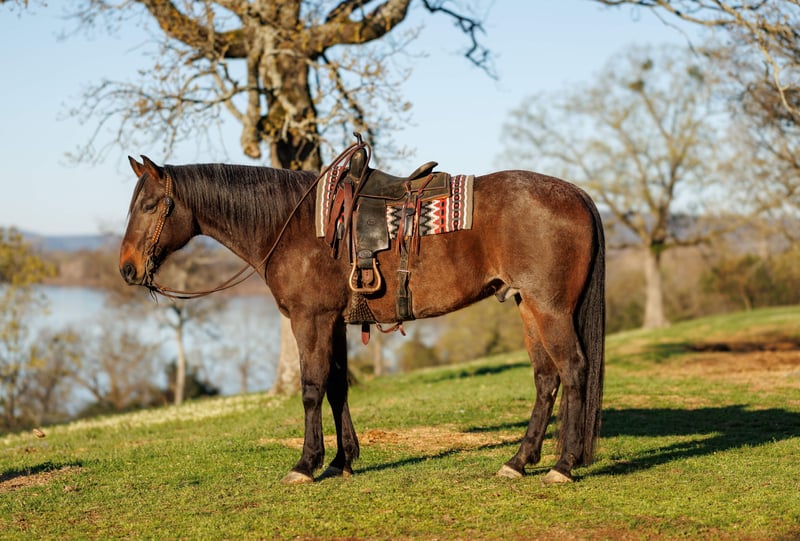 ⚜️𝓽𝓱𝓮 𝐆𝐎𝐋𝐃 𝓢𝓮𝓵𝓮𝓬𝓽⚜️ Happening now thru MONDAY | MARCH 23rd - Available EXCLUSIVELY on HorseBid's website! For more details and to register visit: www.Horsebid.com CONSIGNOR CONTACT: Lacey Wilf Equine 501-940-8704 LOCATION: Quitman, AR BREED: Draft Cross REGISTERED: No COLOR: Bay Roan HEIGHT: 17.2 AGE: 11 GENDER: Gelding Summit is the kind of horse that gets noticed the moment he walks into the picture. Standing an impressive 17.2 hands, this 11-year-old bay roan draft cross gelding is built on a scale that is hard to come by, with the substance, bone, and presence to handle a job that would make lesser horses think twice. His size isn’t just impressive to look at, it’s useful. Summit was built to pack weight, cover country, and keep the same steady rhythm mile after mile. Outside, he’s the definition of a dependable trail partner. Summit travels out confidently, stays sure-footed in rough country, and approaches obstacles with the same steady attitude every time. Logs, water, steep ground, narrow ditches, or whatever else the path throws in front of him, he stays level-headed and keeps on marching. With his size, stamina, and unshakable confidence, he would be a valuable addition to any outfitter string looking for a reliable mount to guide hunts or carry riders comfortably through long days in the mountains. In the arena, Summit shows the same willing mindset. He rides English or Western, carries himself comfortably, and works off a true one-hand neck rein with a simple, honest feel. He’s been well exposed to cattle, helping gather, check fences, push pairs, and work gates without fuss. Around the barn, Summit is the easygoing type that fits right into everyday life. He’s comfortable stalled or turned out with other horses, stands quietly for grooming and saddling, trailers well, and handles the regular routine without any drama. Despite his towering height, he’s especially patient when it’s time to get on. He’ll stand steady for mounting… even if getting aboard means you have to crawl halfway up his side to do it. Big horses can be hard to find. Big horses that are honest, useful, and agile are even harder. Summit is the kind that checks all three. Watch his full Youtube video, feel free to reach out with any questions, and arrange a visit or a FaceTime with Summit!