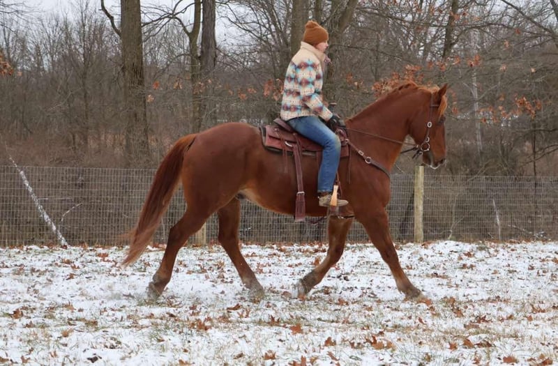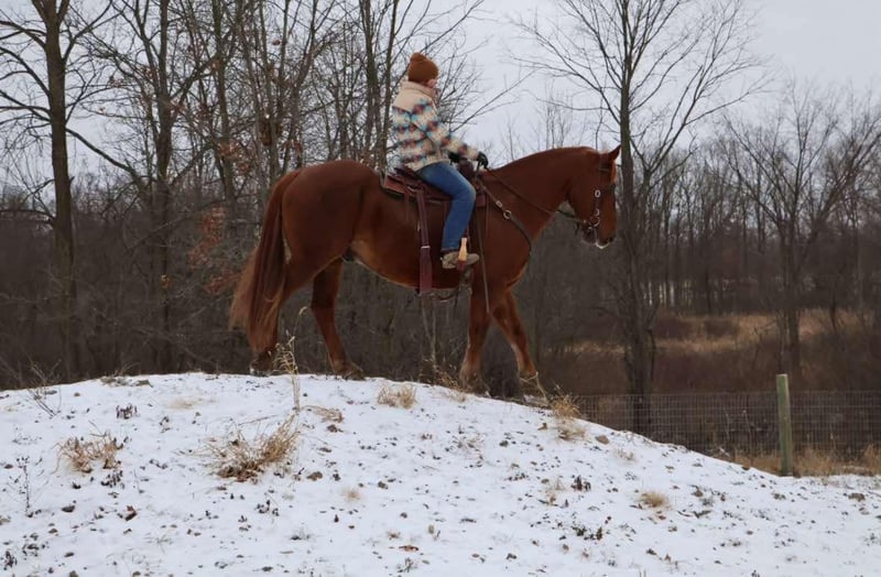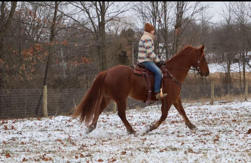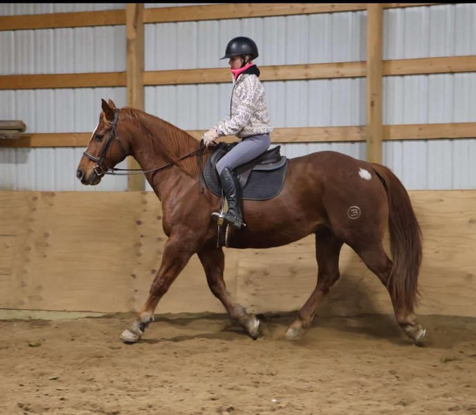 ONLINE AUCTION Place your bids at www.PlatinumEquineAuction.com Starting Bid $3500 Auction ends January 19th, 2025 Need a new saddle? Check out White Rock Saddles on our website or Facebook! Meet Patch… He is a stunning bright chestnut with a big blaze and a white patch on his hip. He stands a solid 16.2hh at 14 years young. Patch is beautifully put together and has great bone structure. He is not to big for most but big enough to take up any riders leg or carry a heavier person. Patch is slow and steady in everything he dose. He has been extensively trail ridden and is not one to shy from anything. Deep woods, water, logs, flags and tarps are not an issue for patch. He will walk trot and canter. His gaits are all very smooth and he has excellent breaks! He stands tied and has a charming demeanor. Patch is a laid back go with the flow guy who will make you want to ride! He plays well with all other horses and ponies in the pasture and stalls with no vices. Patch lives in Howell, MI 48855. Please call or text Ellesse Schwartz 248-390-6831 for more information. ONLINE AUCTION Place your bids at www.PlatinumEquineAuction.com Starting Bid $3500 Auction ends January 19th, 2025 Need a new saddle? Check out White Rock Saddles on our website or Facebook!