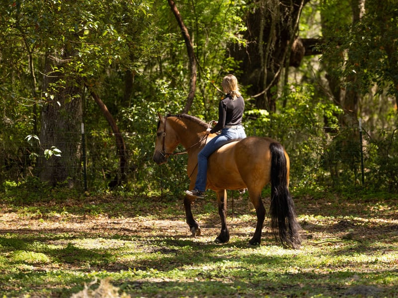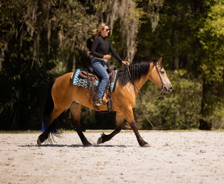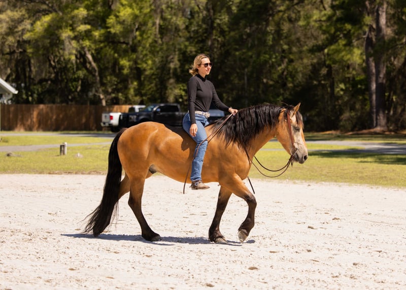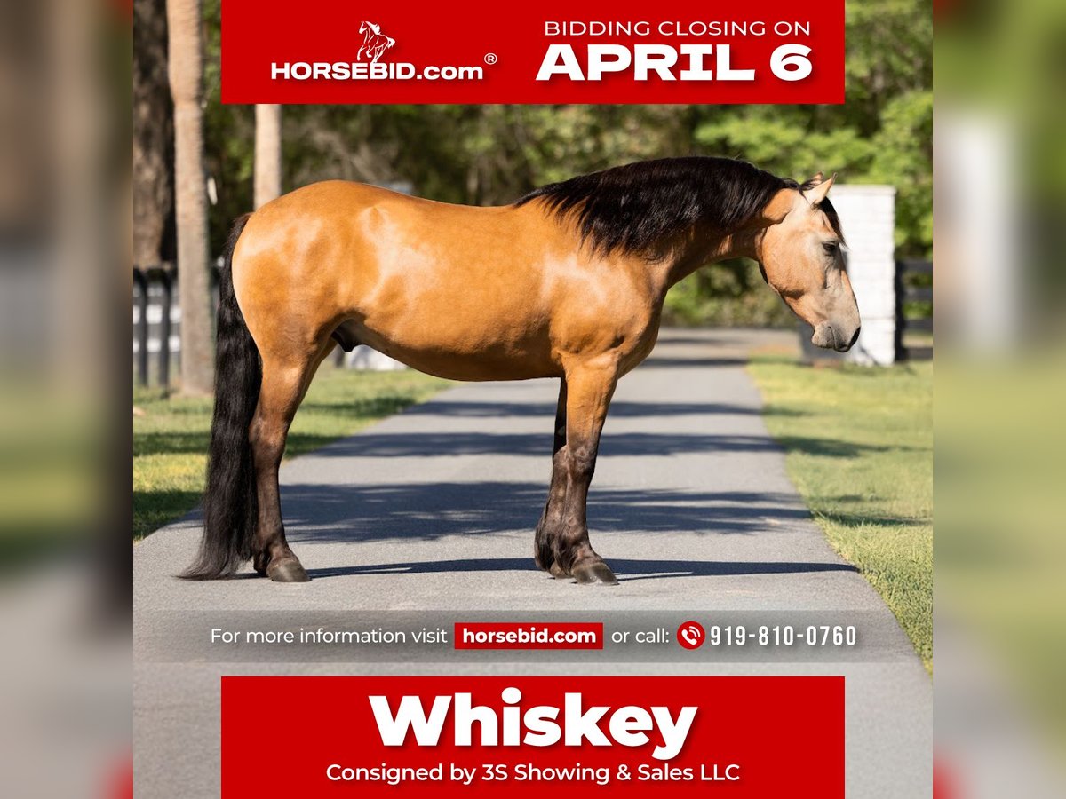 🌟𝑨𝒑𝒓𝒊𝒍 𝐀𝐋𝐋 𝐒𝐓𝐀𝐑 𝐋𝐈𝐍𝐄𝐔𝐏🌟 Happening now thru MONDAY | APRIL 6th - Available EXCLUSIVELY on HorseBid's website! For more details and to register visit: www.Horsebid.com CONSIGNOR CONTACT: 3S Showing & Sales LLC 919-810-0760 LOCATION: Ocala, FL BREED: Draft cross REGISTERED: No COLOR: Buckskin HEIGHT: 14.3 AGE: 4 GENDER: Gelding Whiskey Golden Dappled Buckskin Draft Cross Gelding with a tail that drags the ground. This 4 year old golden dappled buckskin gelding is wise far beyond his years. He stands 14.3 hands tall and has a solid, chunky build. With his long, flowing mane and tail that drag the ground, he is as striking as he is kind. Whiskey has been trail ridden from the mountain ranges of Colorado to the sandy beaches of Florida, and he takes every environment in stride with confidence and ease. Whiskey has been ridden down the road and into town. He is the type that makes every ride feel simple and enjoyable. Under saddle, Whiskey is a standout. He is a lovely mover with smooth, balanced gaits and quality flatwork. He has seamless transitions, easy leg yields, and is soft as butter in the bridle. He is ready to step right into a dressage test, yet just as happily carries a child through a weekend Pony Club outing. This past weekend, Whiskey stepped into the show ring and proved his quality—undefeated, winning the flat class out of a large group. His gaits are incredibly smooth and comfortable, making him a joy for riders of all levels. As fancy as he is, Whiskey is equally kind. He is your classic “giant teddy bear” and in your pocket. He is happy to ride bareback, quiet enough to handle a bullwhip, and willing to go gather cattle. He truly enjoys getting out on the trails and being part of whatever you ask of him. Whiskey has been cross country schooling and confidently jumps logs, gates, drop banks, and goes straight into the water. He has even completed the course with our 8 year old rider, showcasing just how forgiving and trustworthy he is. He has also successfully completed our full obstacle course with ease. In the barn, Whiskey is just as exceptional. He turns out well alone or with others, walks right up to you in the field, and genuinely loves attention. He is the type that forms a true partnership with his person. Whiskey is a true amateur dream—safe, fancy, and versatile enough to do it all.