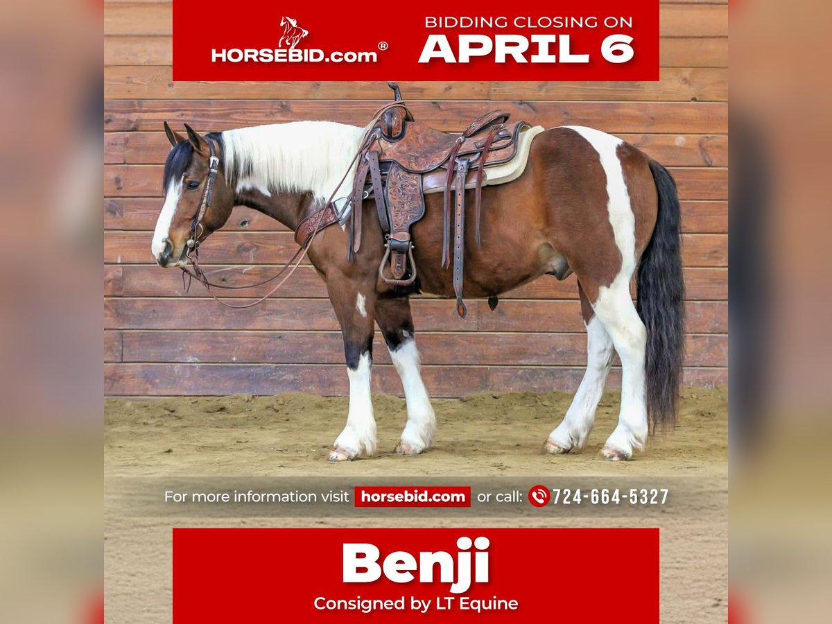 🌟𝑨𝒑𝒓𝒊𝒍 𝐀𝐋𝐋 𝐒𝐓𝐀𝐑 𝐋𝐈𝐍𝐄𝐔𝐏🌟 Happening now thru MONDAY | APRIL 6th - Available EXCLUSIVELY on HorseBid's website! For more details and to register visit: www.Horsebid.com CONSIGNOR CONTACT: LT Equine 724-664-5327 LOCATION: Miola, PA BREED: Paint crossbred REGISTERED: No COLOR: Tri color Tobiano HEIGHT: 14.1 AGE: 5 GENDER: Gelding ✨🐴 Meet Benji — The Little Tank With a Giant Heart! 🐴✨ If you’ve been searching for that safe, fun, do-anything partner that everyone in the family can enjoy… your search stops here 💥 Benji is a 5-year-old, 14.1 hand, stout-made Paint crossbred gelding built like a brick house in a perfectly compact package. Don’t let his height fool you — this guy is WIDE, sturdy, and more than capable of carrying riders of all sizes comfortably. He’s the perfect “easy to get on, hard to replace” size ❤️ But what truly sets Benji apart? His personality. This horse is a WORLD-CLASS sweetheart. He absolutely lives to be loved and wants to be everyone’s best friend. If you enjoy a horse that meets you at the gate, soaks up attention, and has a kind eye and gentle soul — you will fall head-over-heels for this boy 🥰 ⸻ 🧼 Ground Manners That Make Life Easy Benji is the definition of uncomplicated: ✔️ Easy to catch ✔️ Stands tied & cross-ties quietly ✔️ Loads & hauls like a gentleman ✔️ Excellent for the farrier ✔️ Bathes without drama ✔️ Picks up all four feet easily ✔️ LOVES grooming and attention No funny business. No nonsense. Just a good, honest gelding you can enjoy every day 👍 ⸻ 🌲 Trail Horse Deluxe Benji has seen the world and takes it all in stride. ✔️ Rides out alone or in a group ✔️ Confident and willing ✔️ Goes wherever you point him ✔️ Road safe ✔️ Not spooky ✔️ Handles obstacles with ease ✔️ Will carry a flag like a pro 🇺🇸 He’s the type you can relax on and just enjoy the ride 🌄 ⸻ 🏟️ Arena Ready & Willing In the arena, Benji is soft, responsive, and fun to ride: ✔️ Started nicely on a neck rein ✔️ Responds to leg pressure ✔️ Smooth trot ✔️ Easy, balanced lope and on point transitions ✔️ Will try ANYTHING you ask And here’s a show-stopper… ⭐ Benji is trained to lay down on command with a simple tap of the shoulder — a crowd favorite and a special bond builder 💫 ⸻ 🌟 Endless Possibilities Benji’s versatility makes him a fantastic choice for many homes: 🏡 Family horse 🎓 Lesson program superstar 🌲 Trail partner 🏆 English or Western prospect 🍀 4-H mount 🤠 Ranch horse ❤️ Confidence builder He truly has the brain, disposition, and willingness to go in any direction. ⸻ 🩺 Sound, Solid & Ready to Go ✔️ No vices ✔️ Sound and level-headed ✔️ Current vet check ✔️ Fresh shoes ✔️ Ready to hit the trail today ⸻ 🚚 Shipping assistance available nationwide Benji is the kind that’s hard to find — young, safe-minded, versatile, and genuinely kind. Horses like him don’t stay available long 💥 📩 If you have any questions about Benji, please don’t hesitate to reach out. We love talking horses and want to help him find the perfect home ❤️ Have a blessed day! ✨
