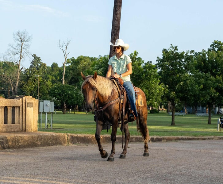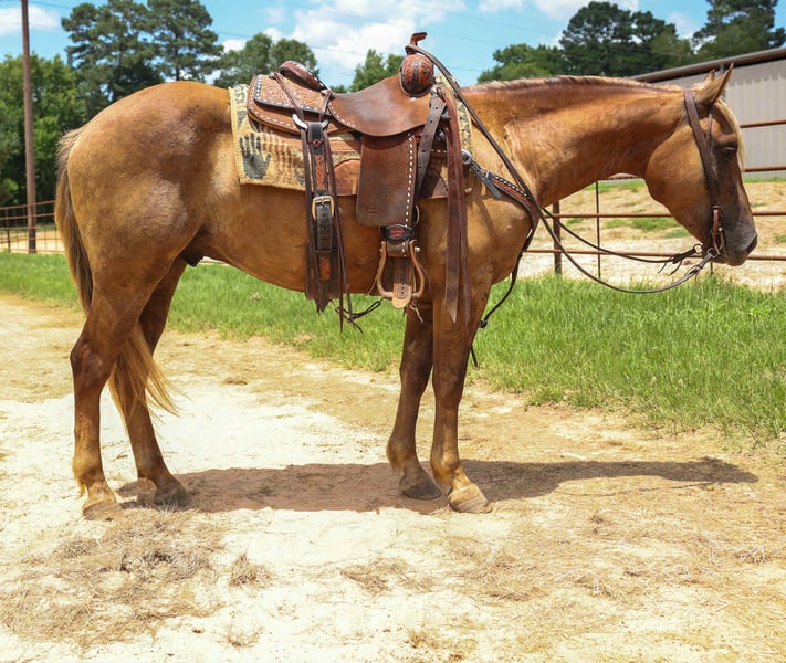 ONLINE AUCTION Place your bids at www.PlatinumEquineAuction.com Starting Bid $3500 Auction ends July 6 2025 Need a new saddle? Check out White Rock Saddles on our website or Facebook! Toffee is a 4 year old halflinger quarter horse cross gelding. Standing 14.3 hands tall and cute as a button, he is sweet, smart and willing to learn! Toffee has the gentle quiet demeanor of a halflinger and has the brains and ability of a quarter horse making him a super cool cross! Toffee has been trail rode extensively, he crosses the creeks, logs, and bridges and does everything with a willing attitude! Toffee has been rode in the mountains and has also been packed on, he is quiet minded and handles new things well! He also has a good foundation in the arena and is soft in the face and aims to please, he has a nice soft stop and will lope out nice as well! Toffee has been rode all different levels and ages of riders and is suitable for most anyone! If you’re looking for a super cool prospect, family horse or trail horse be sure to check Toffee out! He is located in Rusk TX, nationwide shipping is available! Call or text Sarah Kruger 605-759-0491 for more info or to set up a time to come meet Toffee! ONLINE AUCTION Place your bids at www.PlatinumEquineAuction.com Starting Bid $3500 Auction ends July 6 2025 Need a new saddle? Check out White Rock Saddles on our website or Facebook!