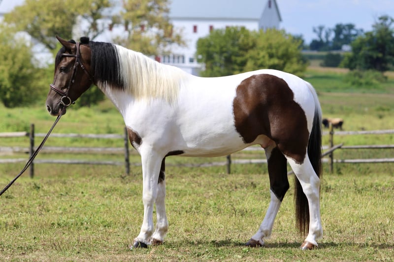 ⚜️ 𝓽𝓱𝓮 𝐇𝐨𝐫𝐬𝐞𝐦𝐚𝐧'𝐬 𝓢𝓱𝓸𝔀𝓬𝓪𝓼𝓮⚜️ Happening now thru MONDAY | DECEMBER 1st - Available EXCLUSIVELY on HorseBid's website! For more details and to register visit: www.Horsebid.com CONSIGNOR CONTACT: CM Farms 717-875-2061 LOCATION: Gap, PA BREED: Draft/Paint x REGISTERED: No COLOR: Tri Paint HEIGHT: 15.1 AGE: 4 GENDER: Gelding Meet Sánchez, a 4-year-old, 15.1–15.2hh Draft/Paint cross gelding, a.k.a. Mr. Adorable Tank on Four Legs. This compact cutie is built like a brick house and has the personality of your favorite golden retriever. He’s the kind of horse that makes you smile every time you see him — and he knows it. He’s got solid conformation, like “could survive the apocalypse” solid, but without being a skyscraper. He’s the perfect height for those of us who like our horses to be sturdy and substantial — but not so tall that you need a parachute to dismount. He takes up leg beautifully and rides both English and Western, because why limit yourself? In the arena, Sánchez is that magical combination of comfy and uncomplicated. He stands patiently to be mounted — block, ground, whatever — and once you’re on, he’s got a walk-trot-canter that feels like riding a couch made of clouds. His trot is easy to sit (yes, really), and his canter? So smooth you’ll forget about your to-do list and start planning your next trail snack. He’s got a shorter stride, which means tight circles are no problem — and you won’t feel like you’re driving a stretch limo. He’s responsive, but not reactive — just the right mix of “let’s go” and “chill out.” You don’t have to constantly nag him to move, but you can put a leg on without getting launched into space. He stops like a pro with a little seat and a “whoa,” and his brakes work better than most luxury cars. Sánchez is basically the Swiss Army knife of horses. Want to dabble in dressage? Go for it. Try some jumping? Sure. Hit a hunter pace? Absolutely. Or maybe you just want a best buddy for trail riding and barn gossip — he’s your guy. On the trail, he’s a total gem. Front, middle, back, solo — you name it. He’s been through creeks, rivers, woods, and wide-open fields like he’s auditioning for a nature documentary. He’s brave, steady, and probably more reliable than your GPS. He’s even taken beginner riders out for a spin and kept things cool, calm, and collected. He’s popped over tiny logs in the field like a saint, knees up, ears forward, and zero drama. This guy loves going new places — he’s basically the horse version of that friend who always has their bag packed for a weekend trip. Load him up, and he’s ready to go, ears perked and wondering if there will be snacks. Desensitization? Oh, he’s done it all. Fire? Check. Traffic? No problem. Tarps, balls, smoke bombs? Bring it on. While he’s not a total deadhead (he does have a brain), he’s not spooky — more curious than anything. If something startles him, he does a little blink, shrugs it off, and keeps on trucking. In the barn, Sánchez is a gentleman. He minds his manners, respects your space, and plays nicely with the other horses. He stands like a champ for grooming, tacking, and farrier visits. He picks up his feet without fuss and never turns into a pushy brat. At first, he might seem a little stoic — like a mysterious cowboy in a movie — but give him a minute, and suddenly he’s your best friend, rooting through your pockets for peppermints like a seasoned treat detective. We truly love this young guy and believe his future is super bright. That said, he is still young and learning, so he probably isn’t ideal for a complete beginner unless they’re working with a trainer who can help guide him on his path to world domination — er, success. We want a home for him where he’ll be appreciated, loved, and maybe occasionally spoiled with cookies. Because let’s be honest — this horse is kind of amazing.